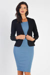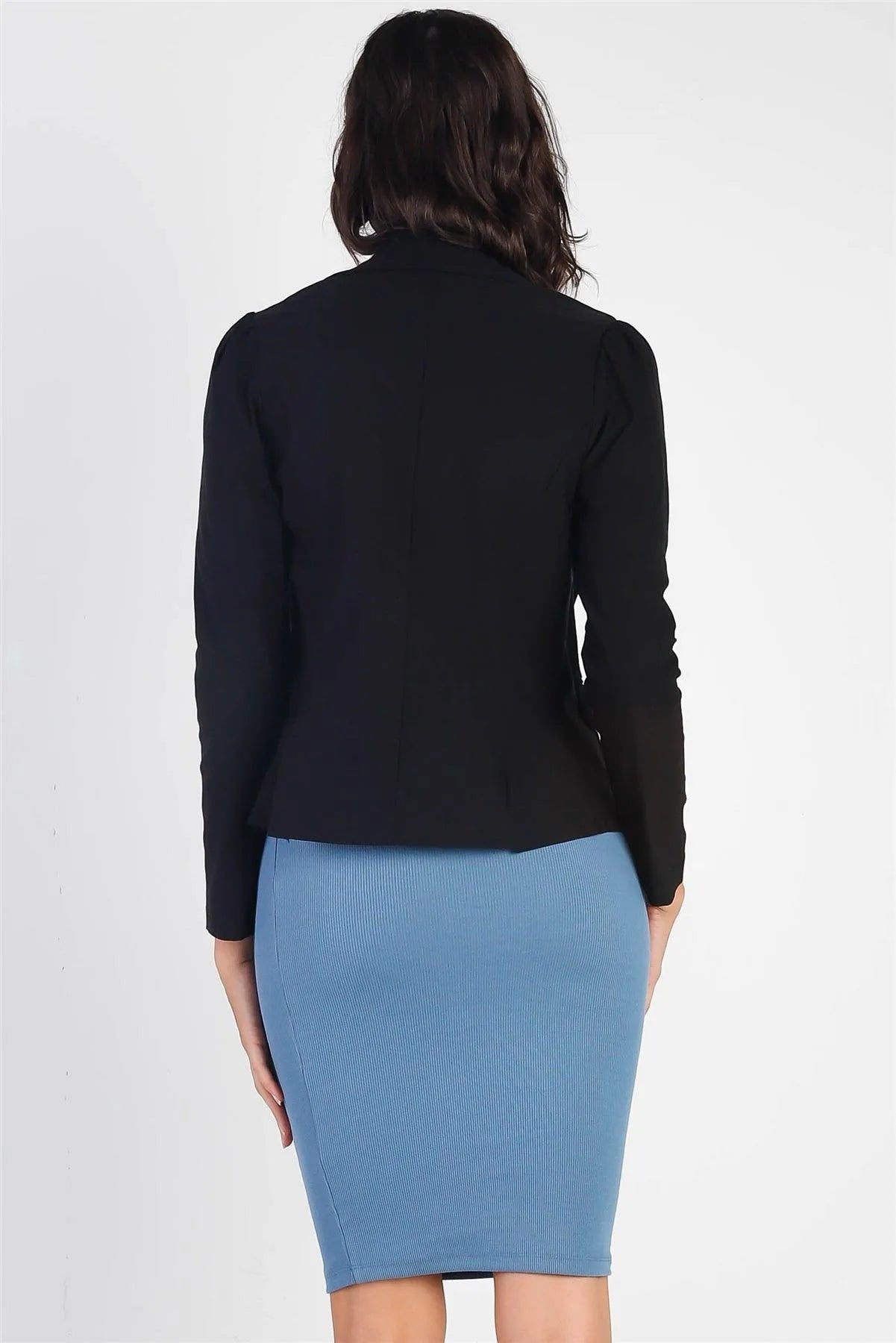 Strict Black Lapeled Collar Fitted Single-Breasted Blazer /1-2-2-1