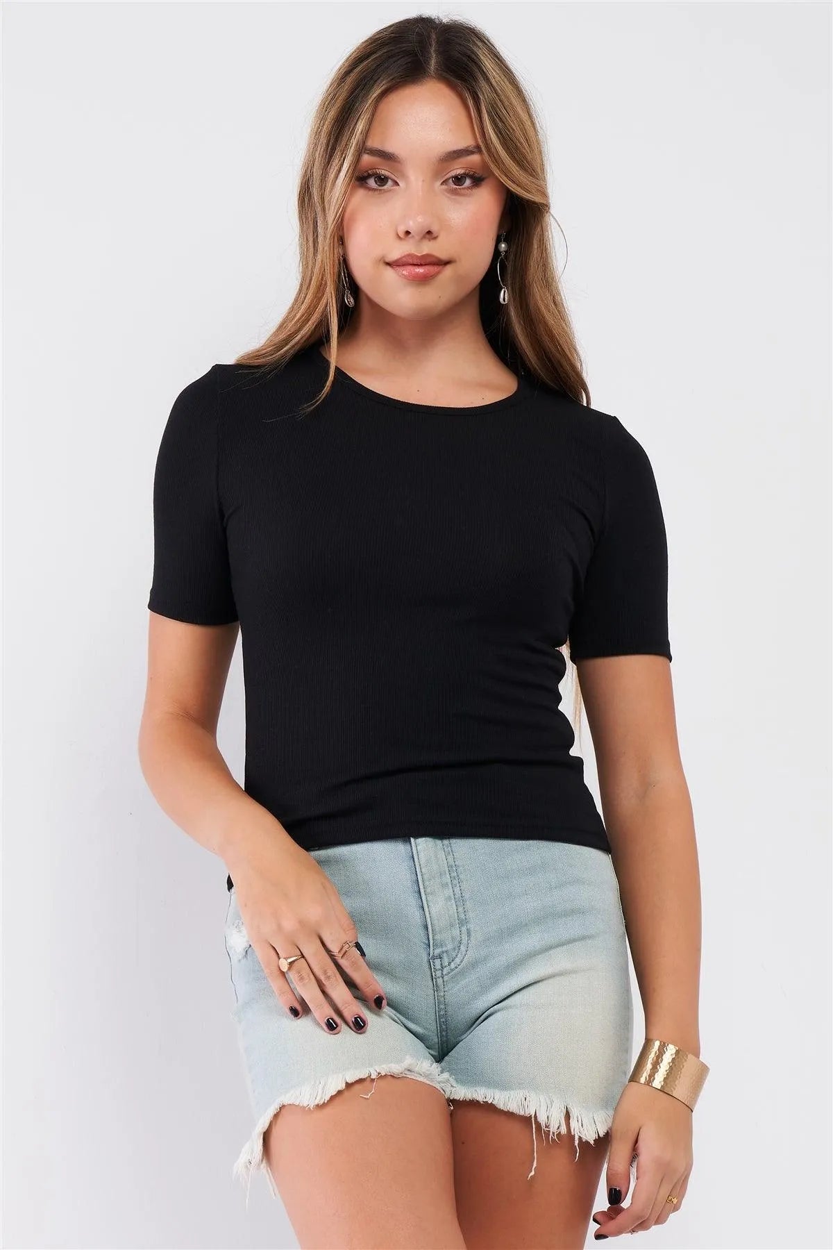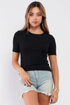 Black Light Ribbed Crew Neck Short Sleeve Basic Tee /2-2-1