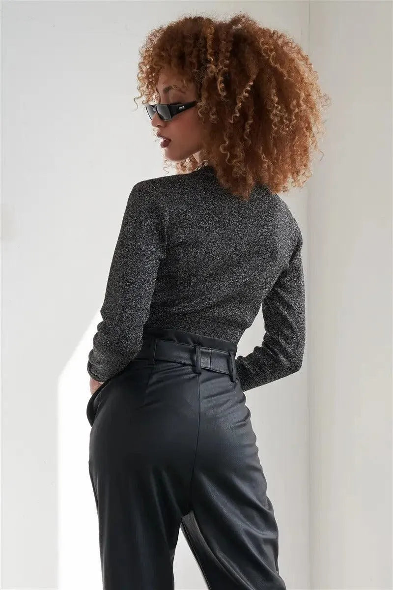 🖤 Item Features: Sparkly, metallic, black, long sleeve, button up, cropped, stretchy, unlined, tight fitting, scoop neck, cardigan crop.