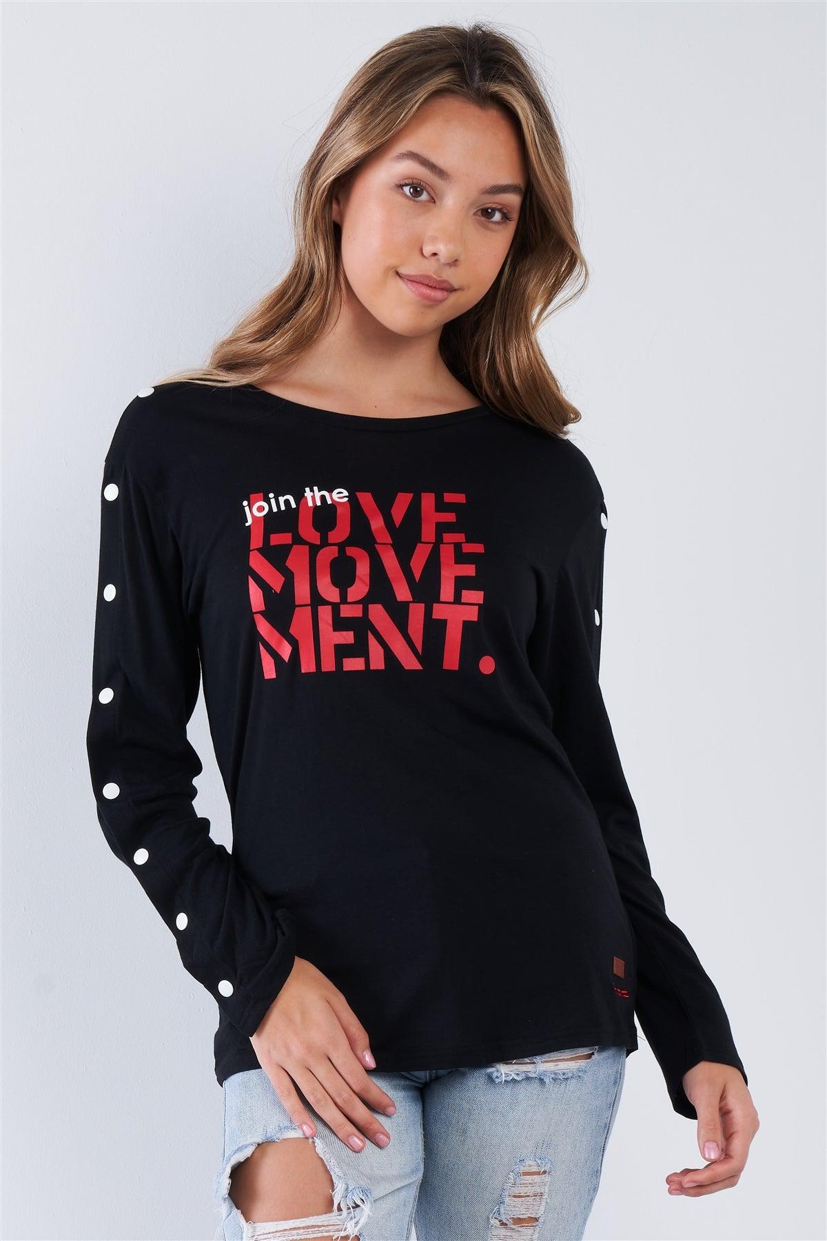 Long Sleeve "Join The Love Movement" Shoulder Snap Detail Top