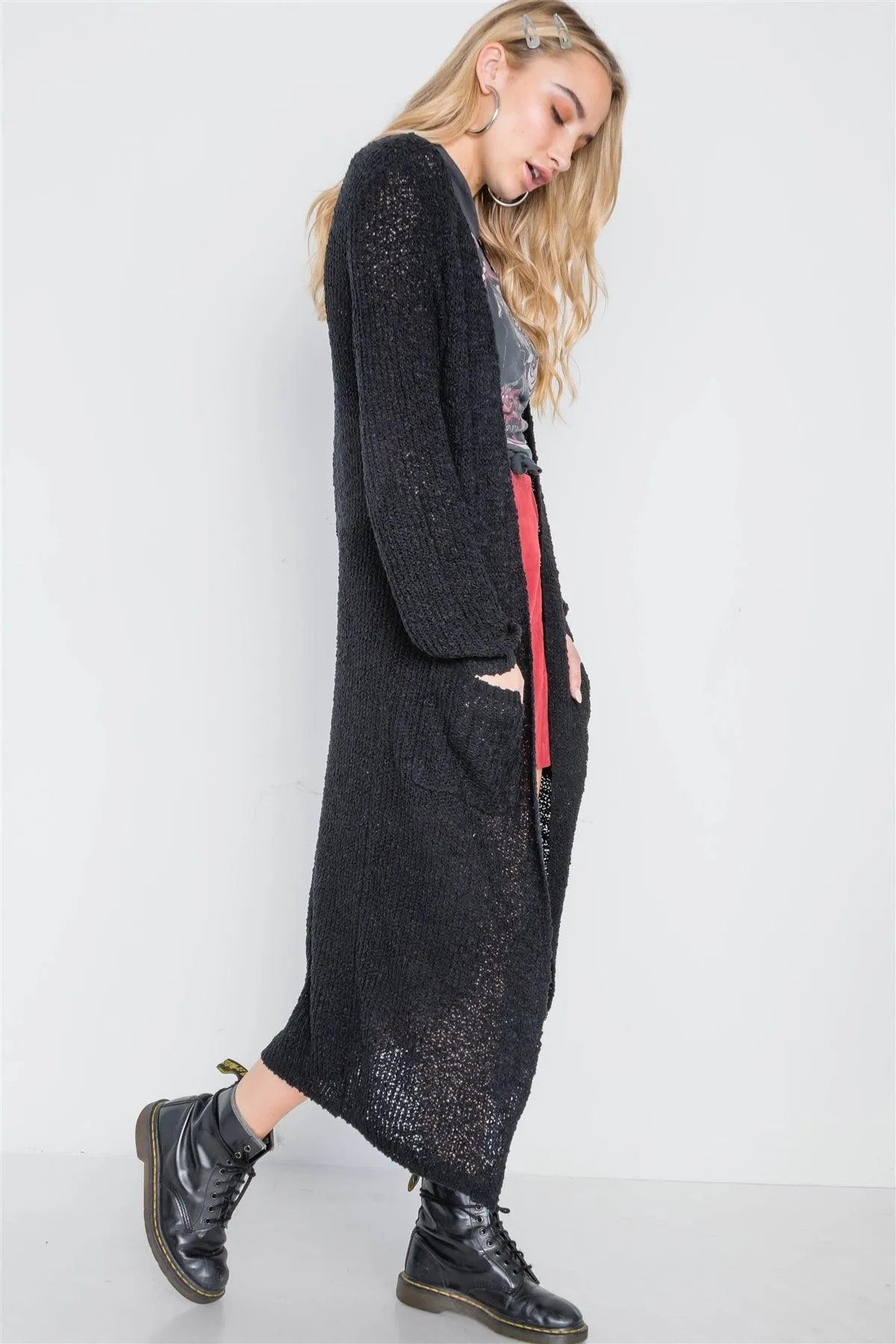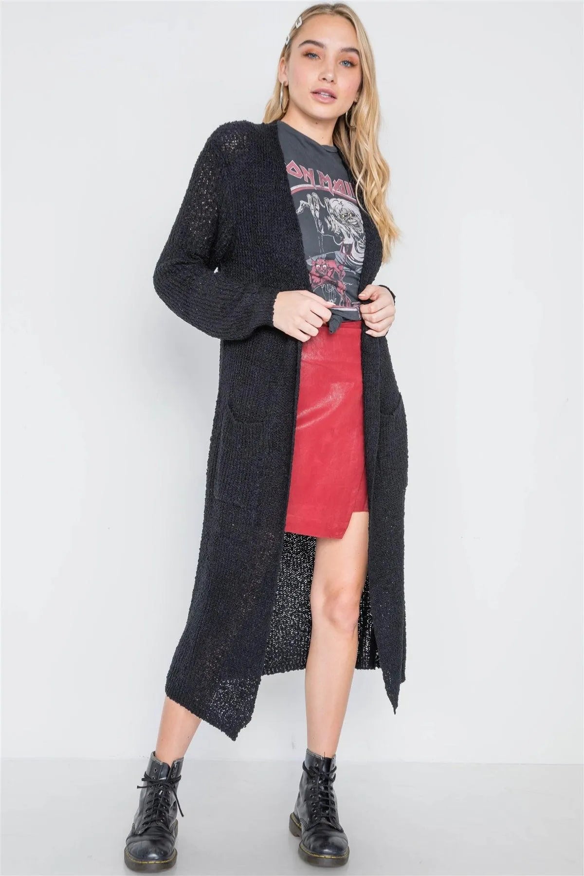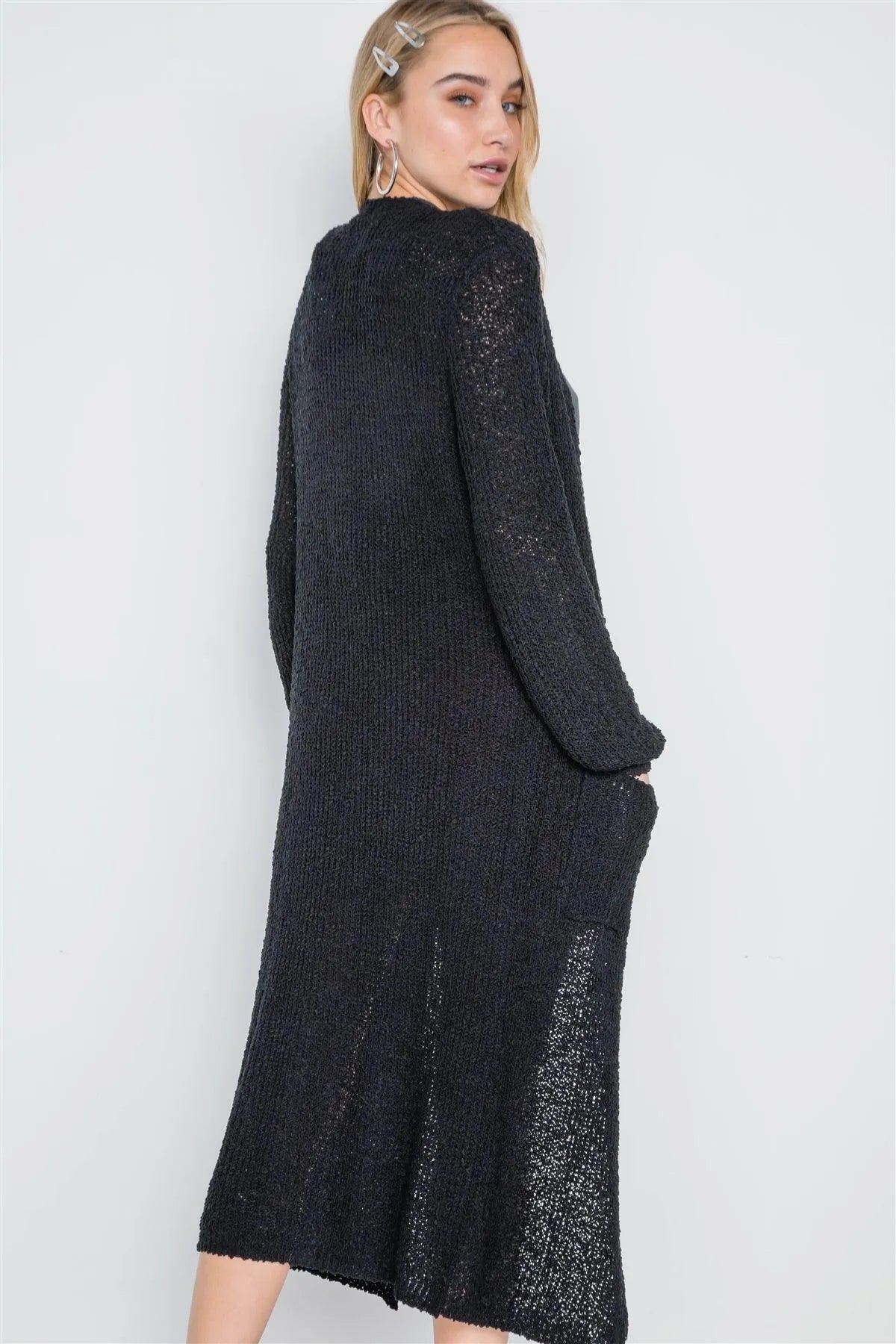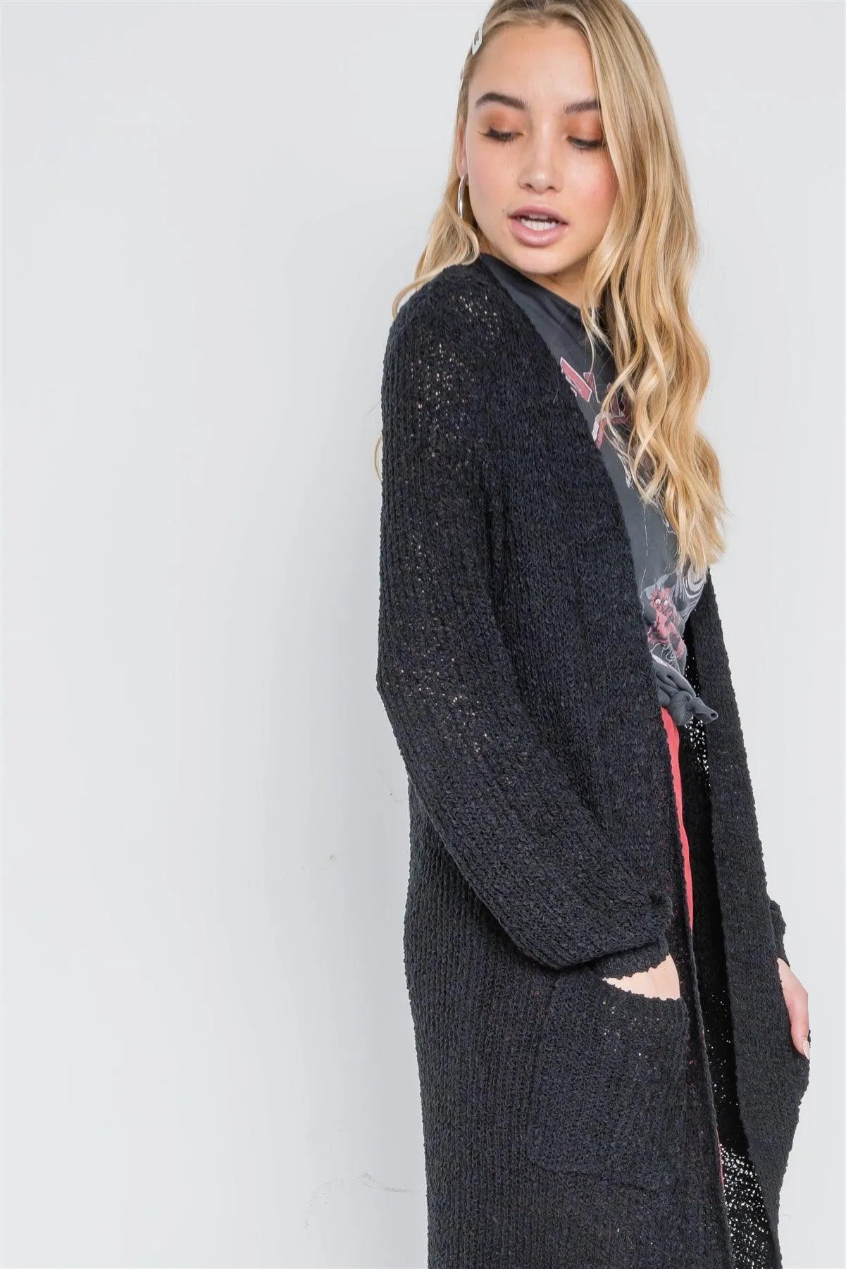 Black Long Sleeve Open Front Knit Cardigan /3-3
