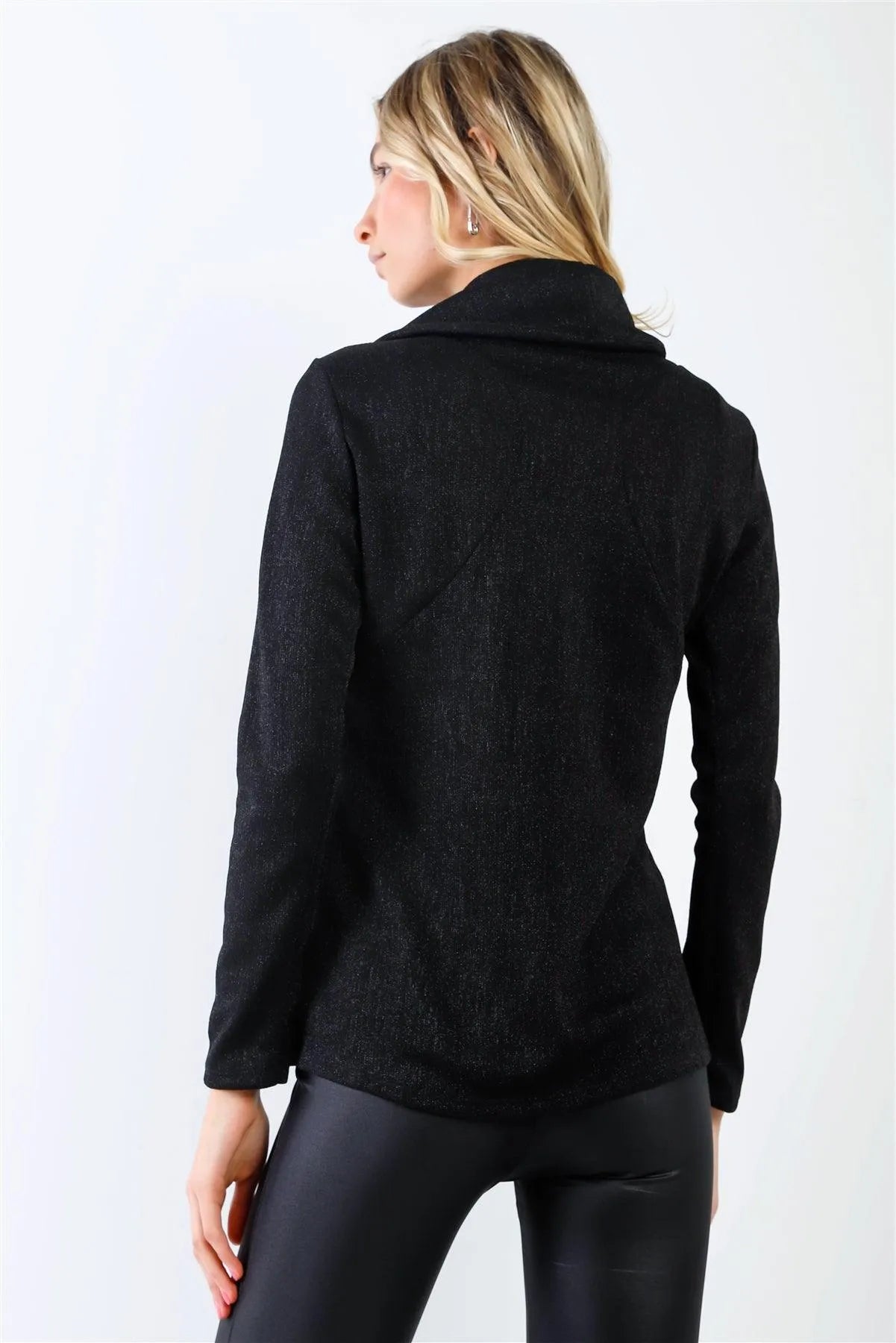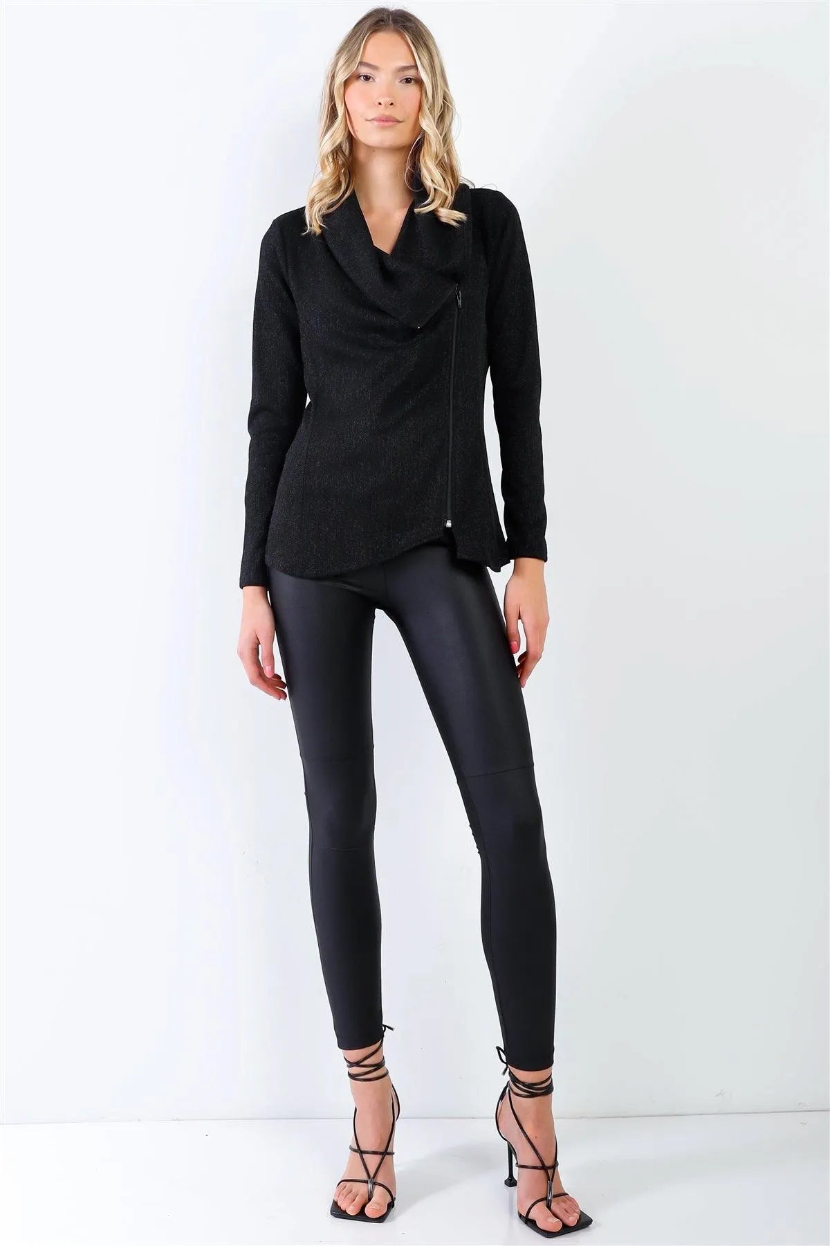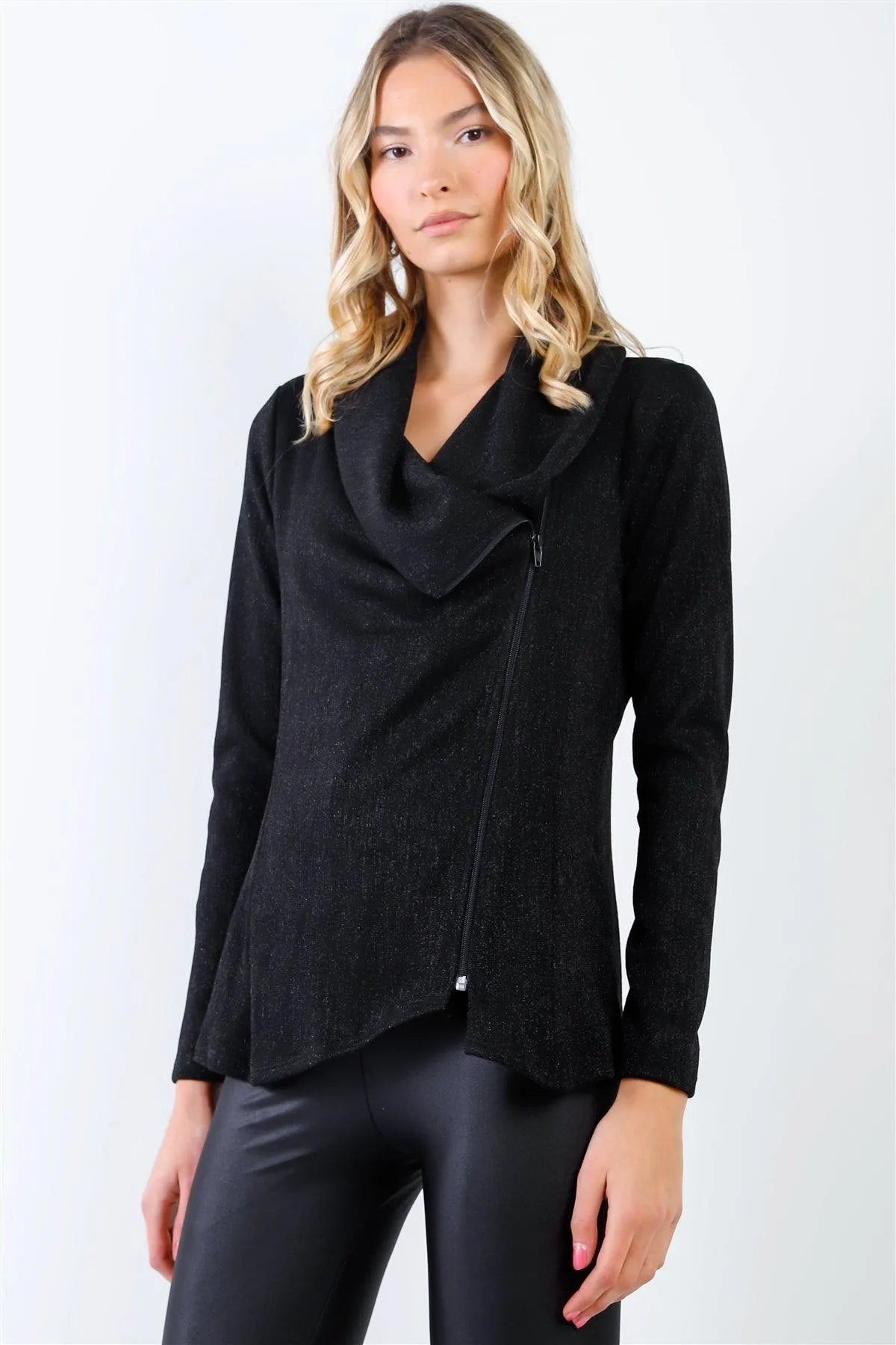 Black Lurex Draped Collar Side Zip Up Lightweight Jacket /2-2-3