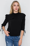 Black 3/4 Sleeve Ruffle Detail Boho Top / 2-2-2