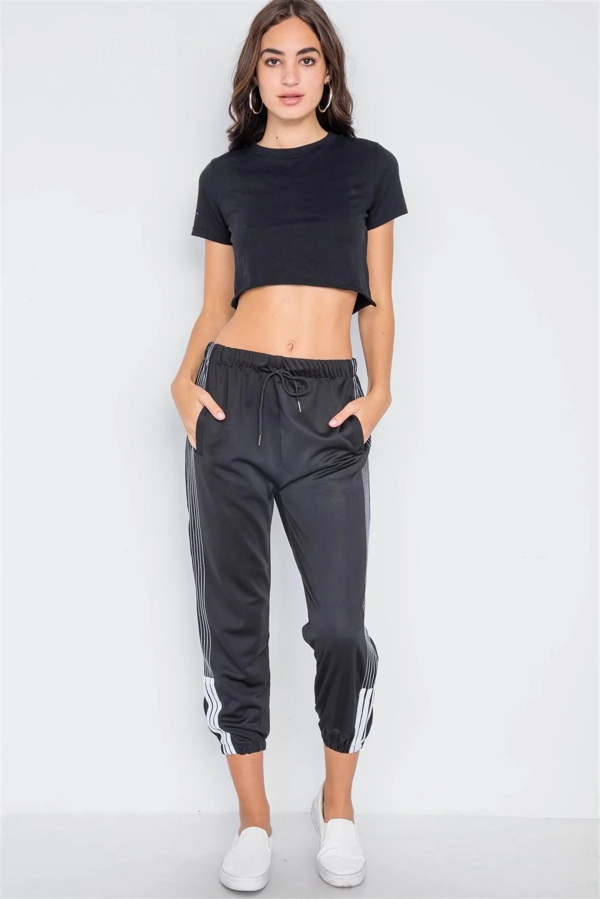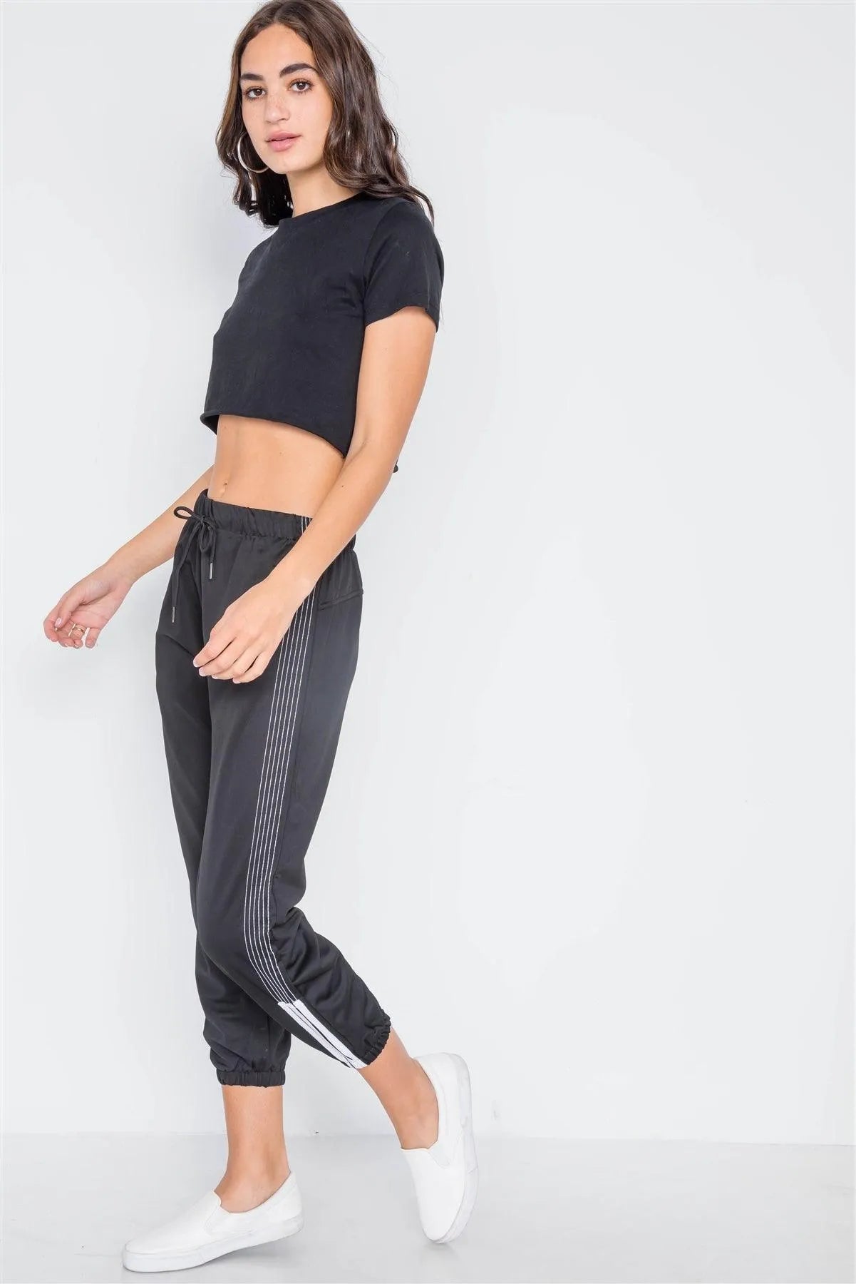 Black Mid-Rise Contrast Trim Sporty Joggers Pants /3-3