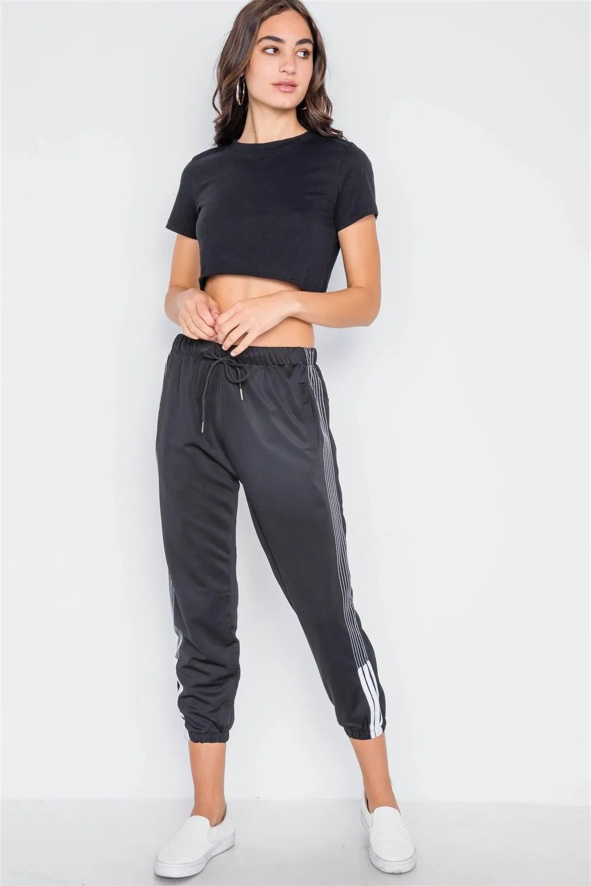 Black Mid-Rise Contrast Trim Sporty Joggers Pants /4-3