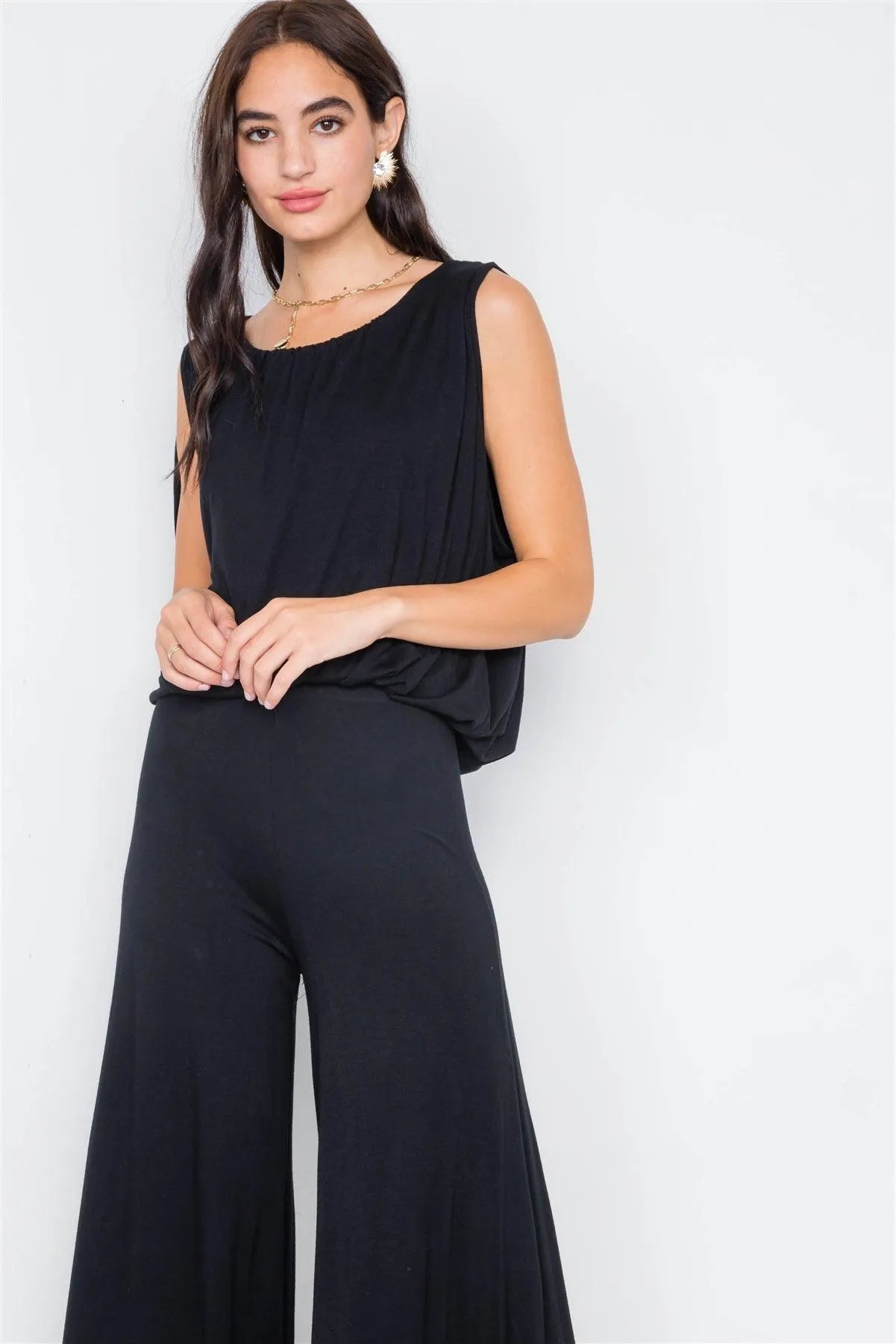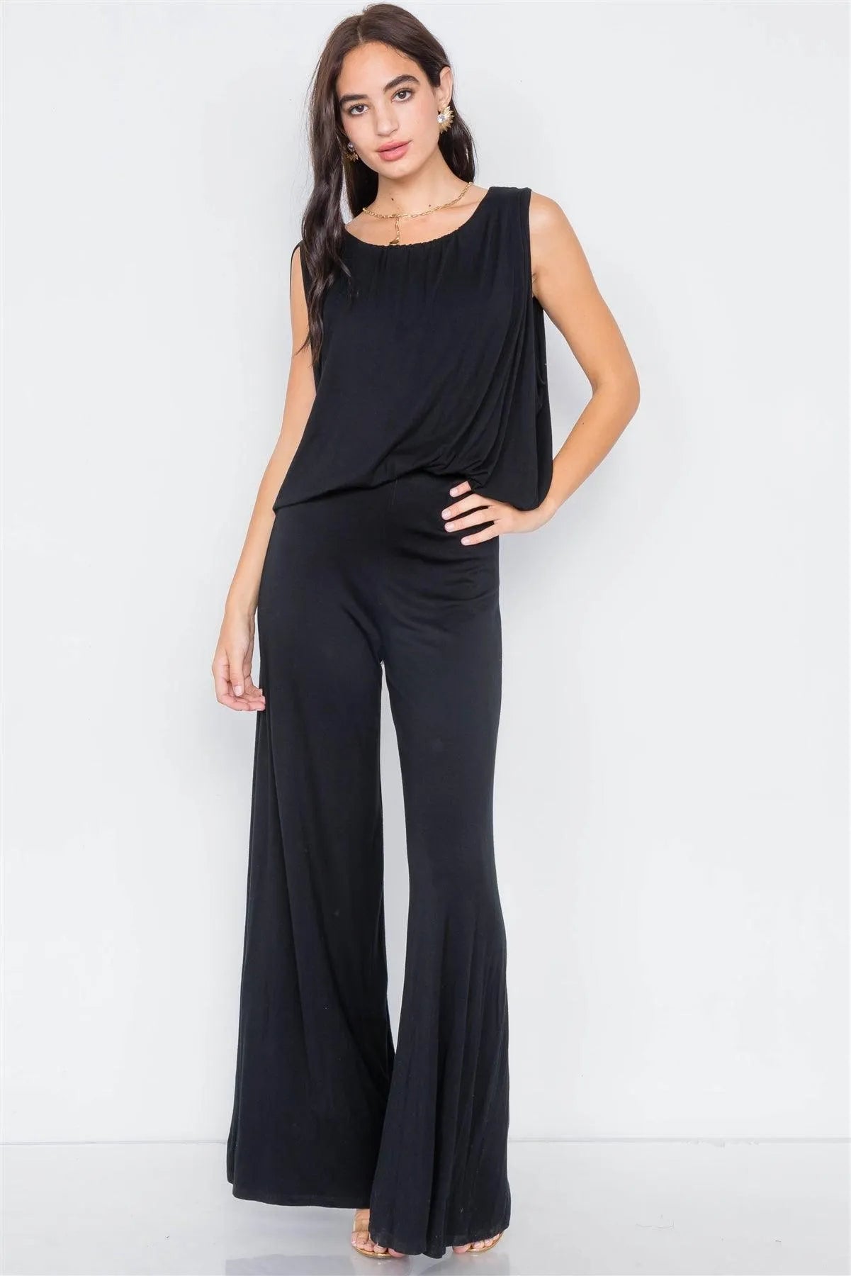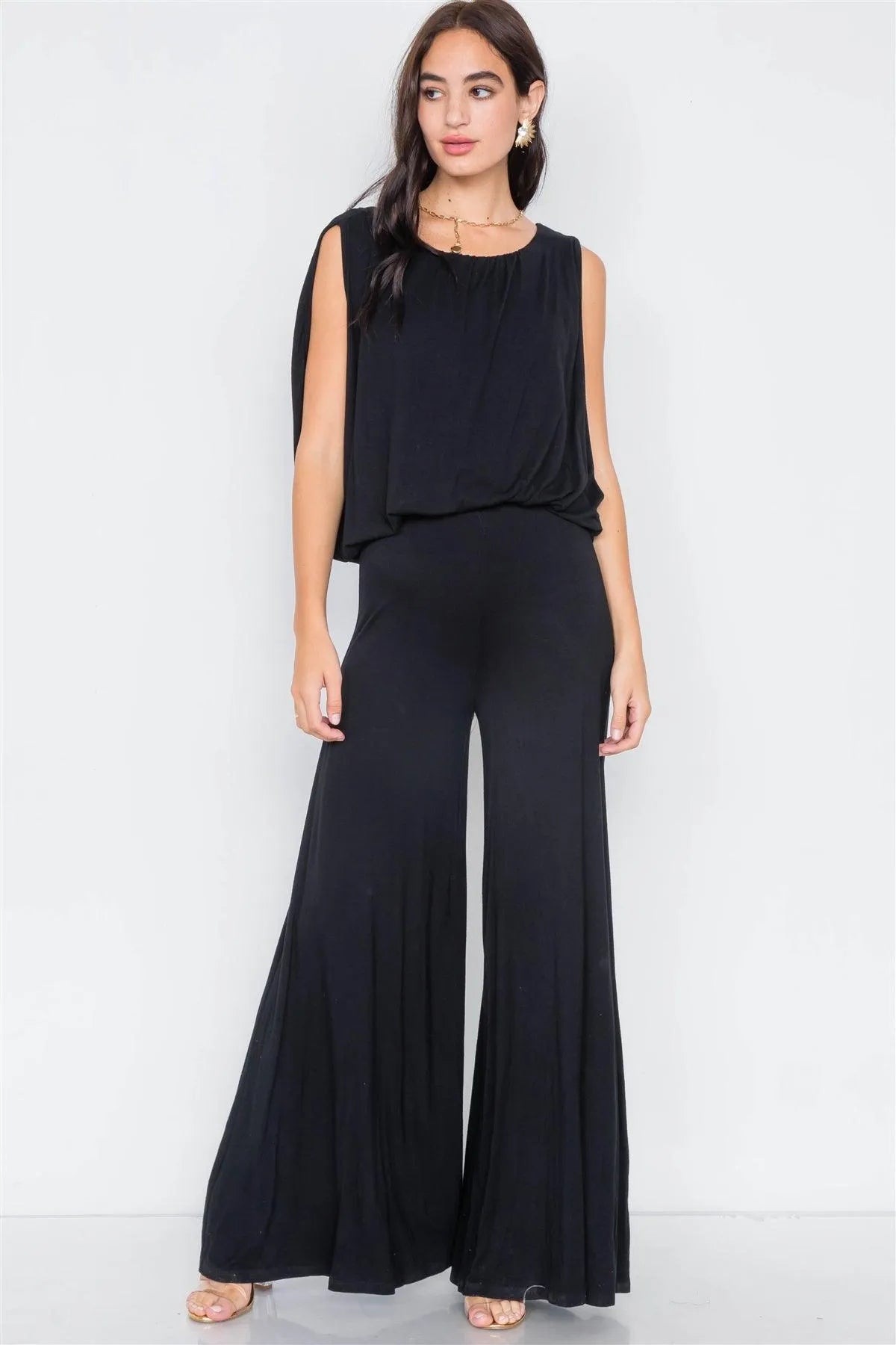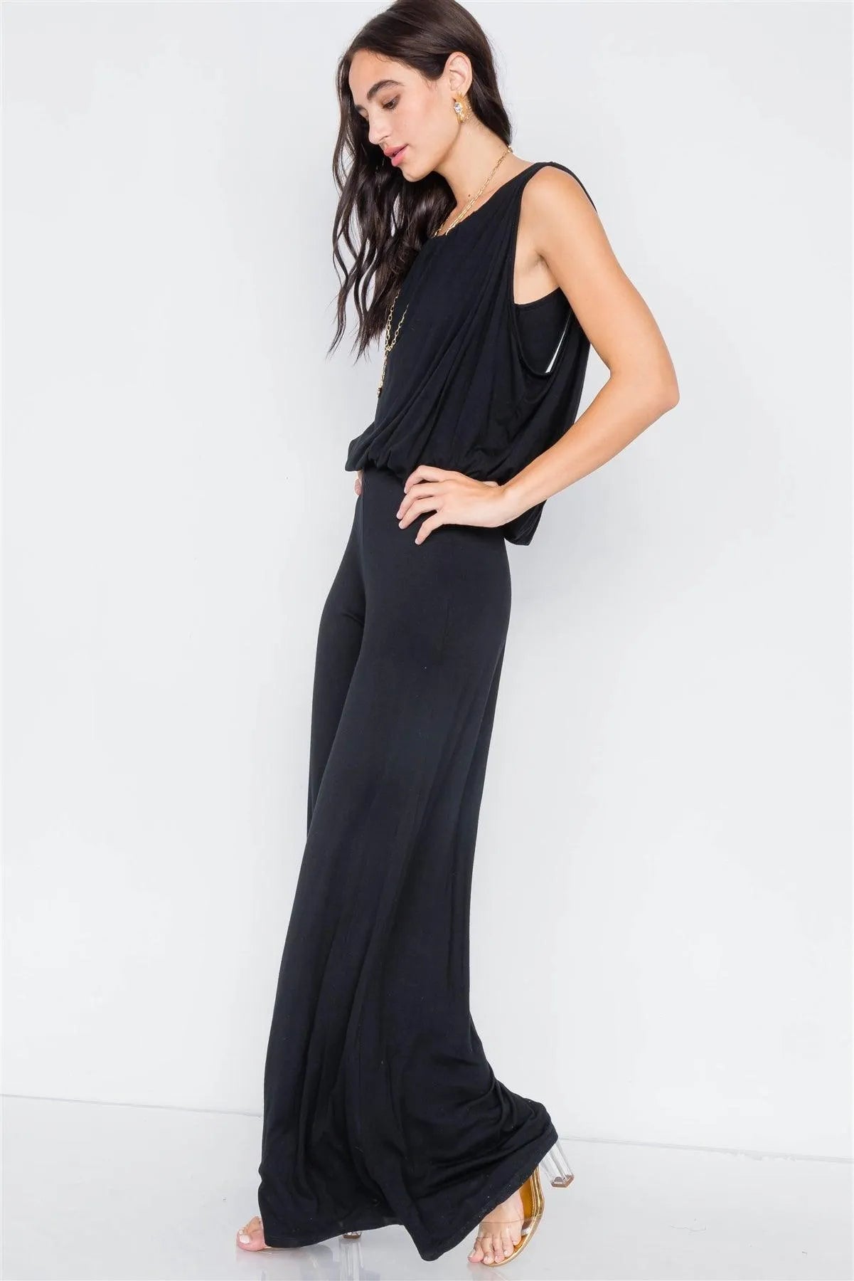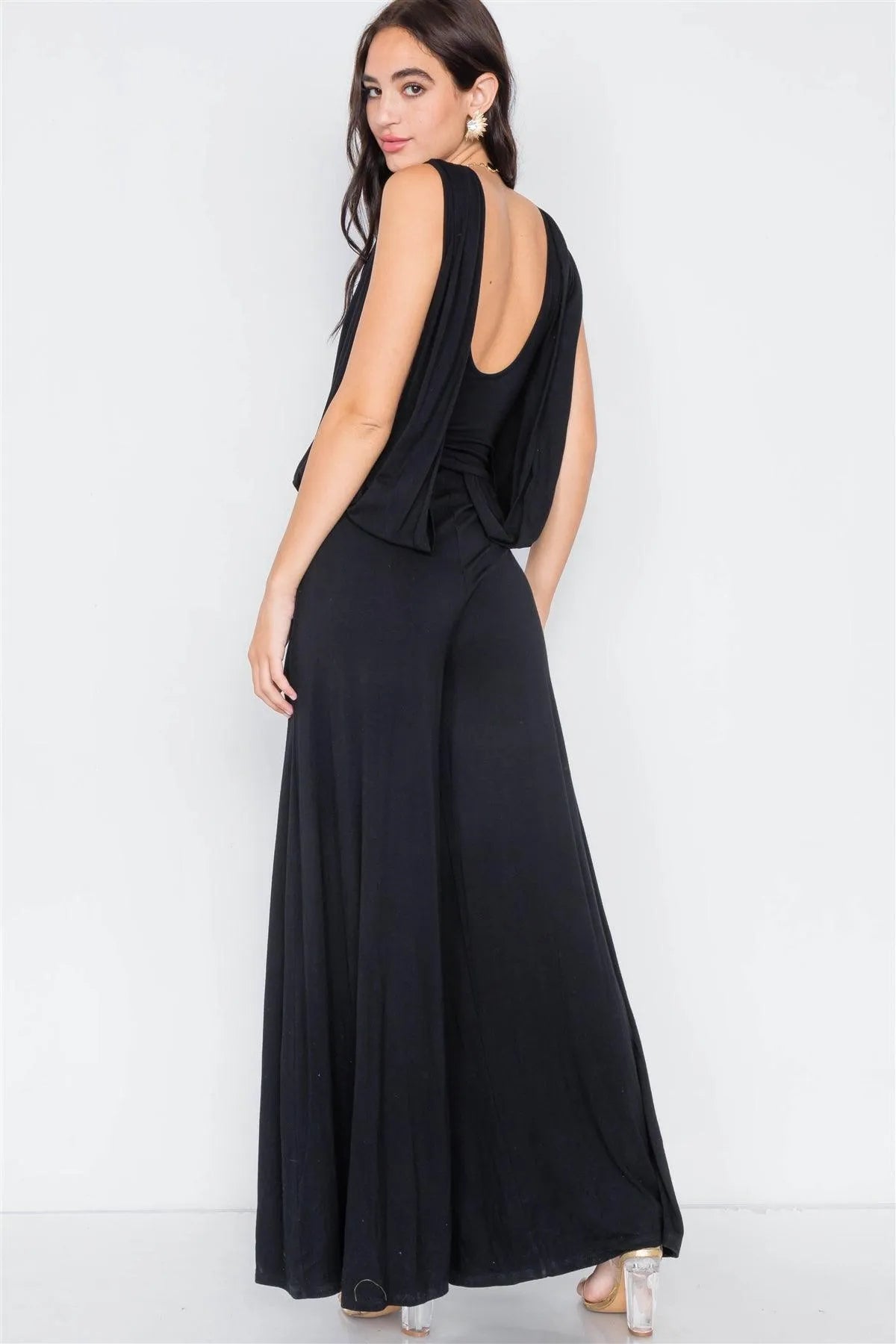 Black Mock Cape Scoop Neck Jumpsuit / 2-2-2