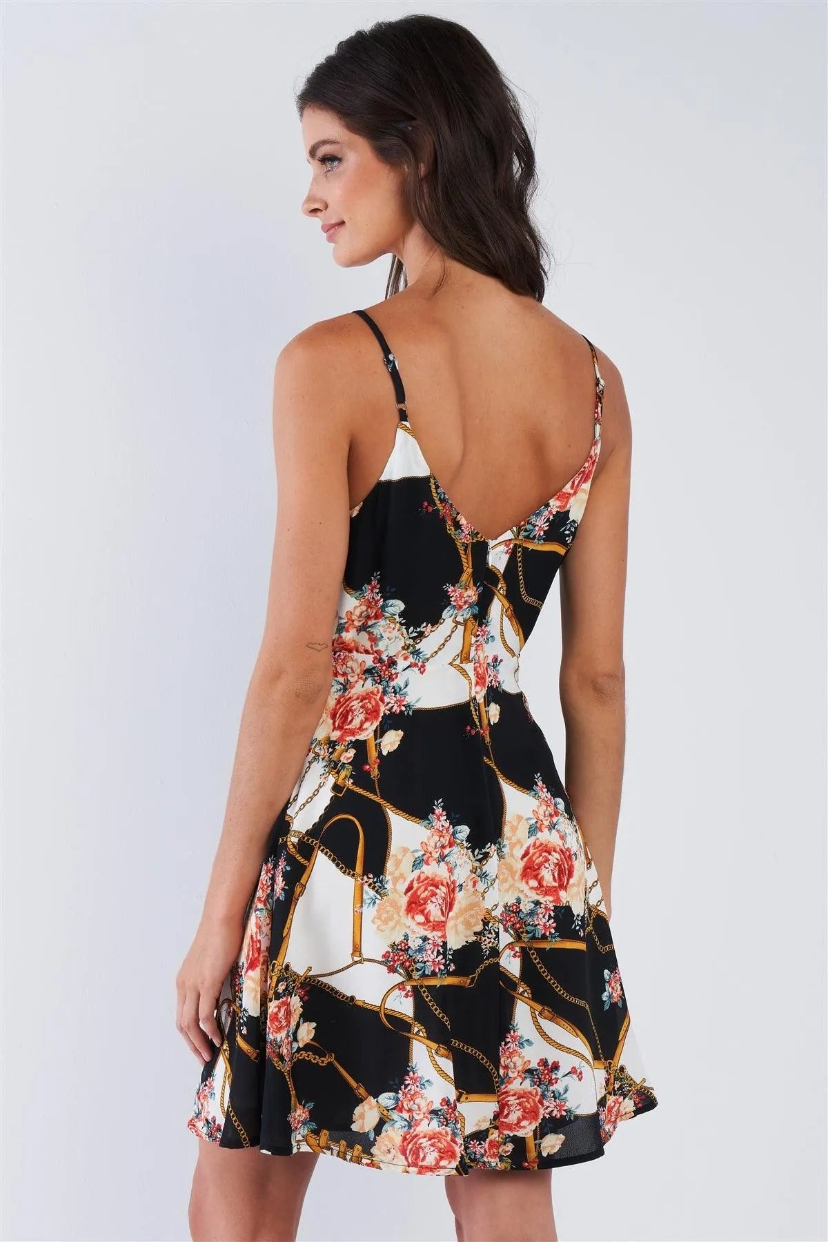 Black Multi Floral Belt & Chain Printed Mini Dress