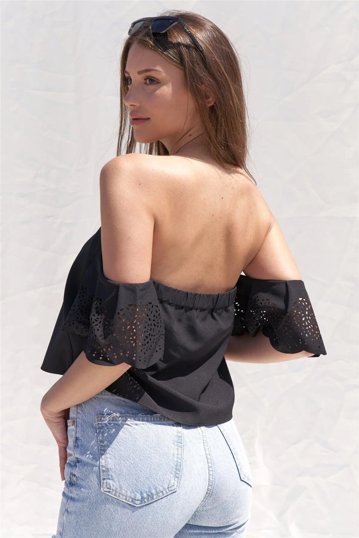 Black Off The Shoulder Confetti Cutout Sleeve Top /1-2-2-1