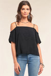 Black Off-The-Shoulder Square Neck Loose Fit Chest Pocket Detail Top /3-3