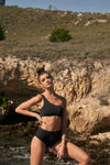 Hannah is 5'9" (Bust: 32B, Waist: 24", Hips: 36"). Model is wearing size S.