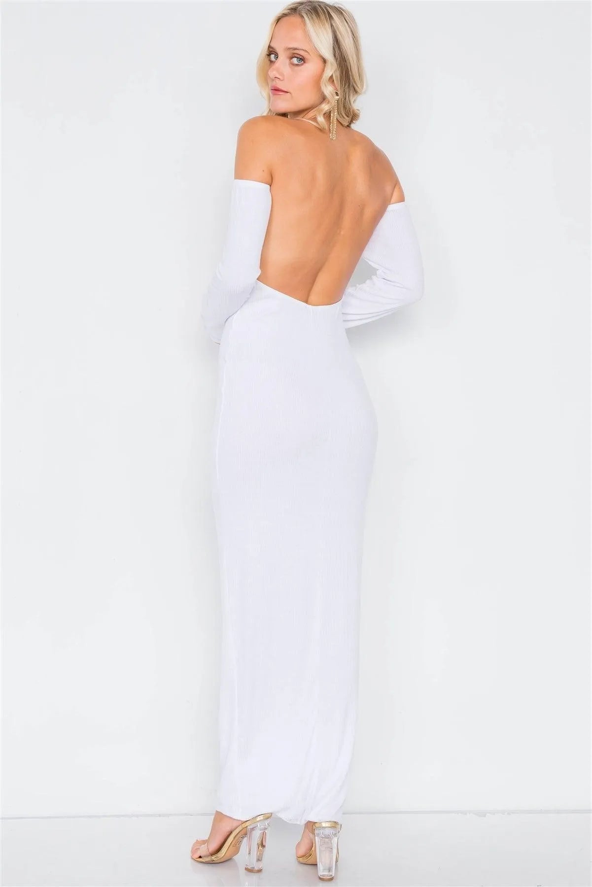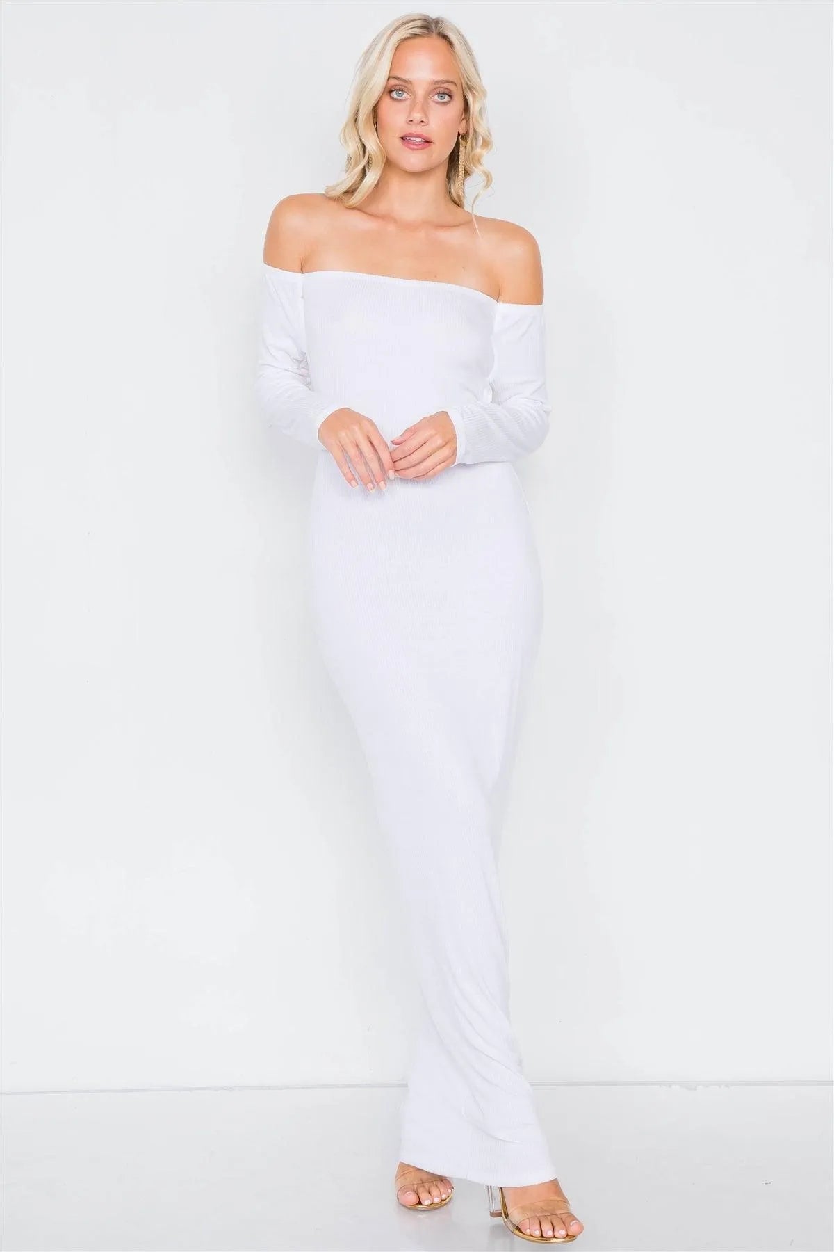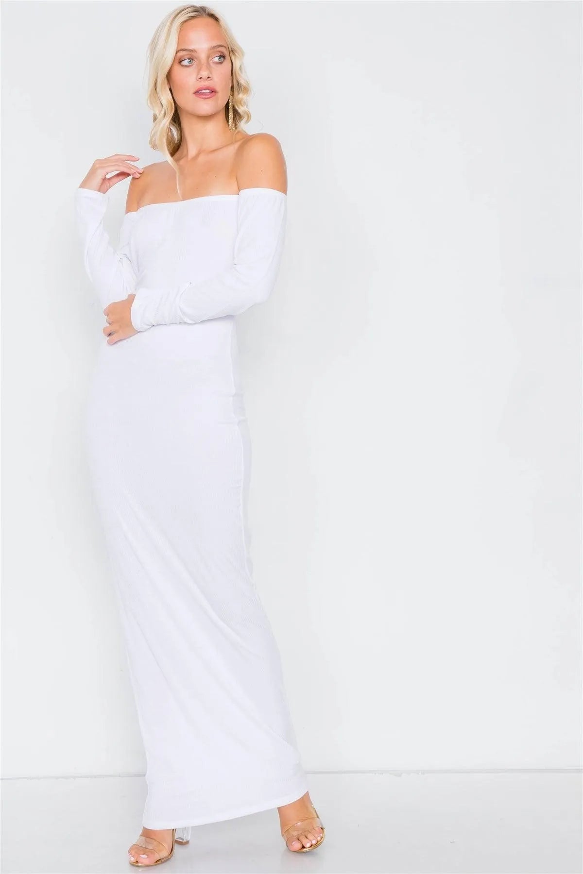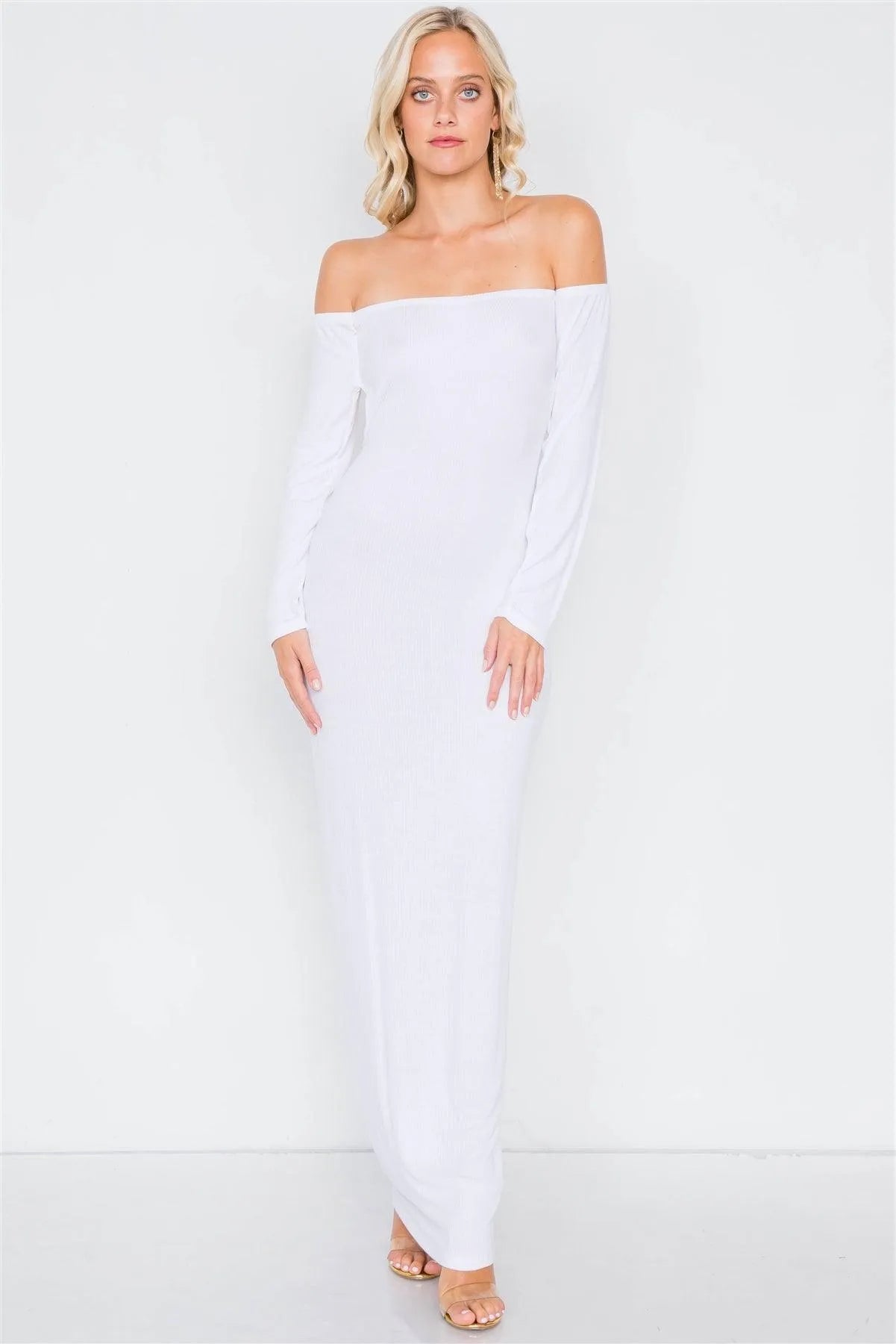 Coral Off Shoulder Ribbed Knit Long Sleeve Boutique Maxi DressVendor:HYFVE