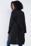 Black Classy Open Front Self-Tie Relaxed Fit Long Sleeve Lightweight Midi Trench Coat Jacket /2-2-2