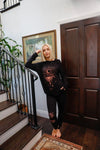 Black & Pink Moon Sun Astronomy Print Hooded Long Sleeve Top & Pants Set /1-1-1