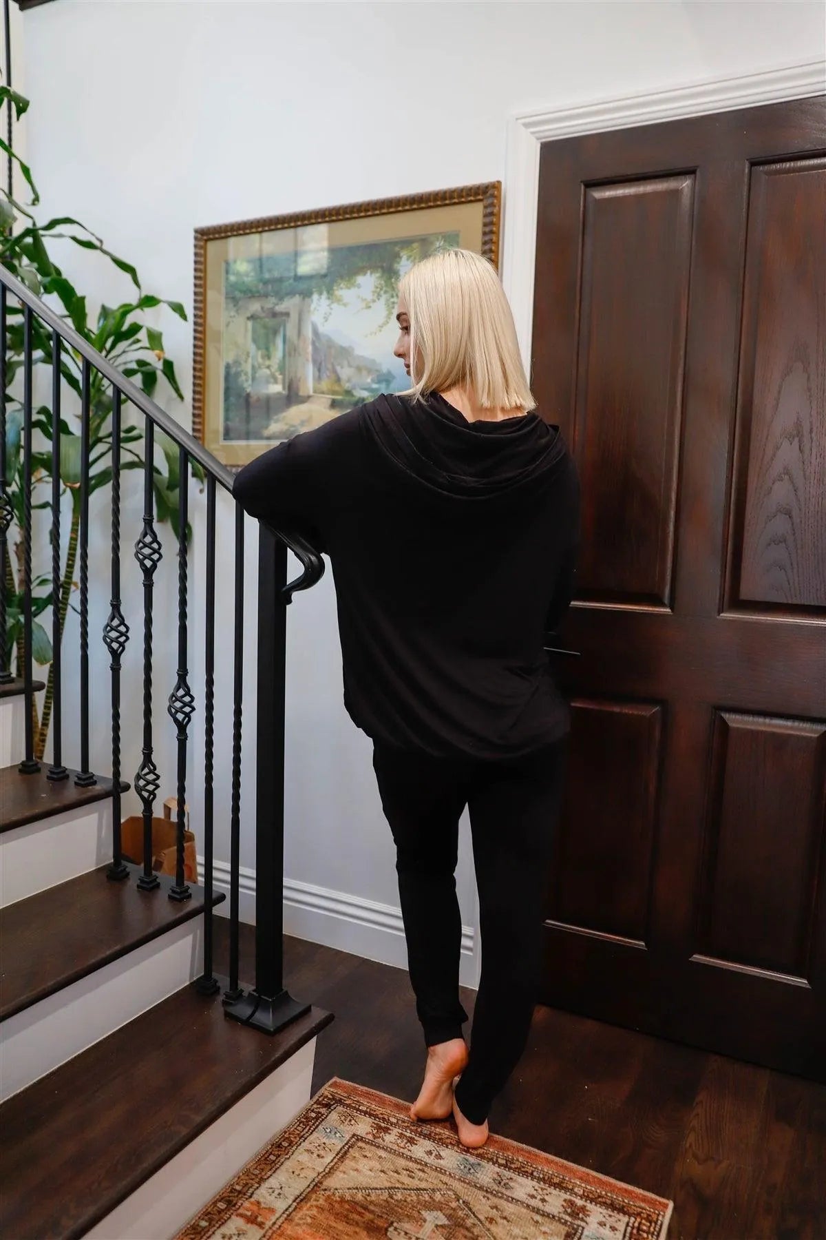 🖤 Item features: Black & pink, moon sun astronomy front print, hooded, long cuffed sleeves & hem, cuffed pants, elasticized waistline with drawstring, two side pockets, unlined, stretchy, non-sheer, lightweight, casual, loungewear, comfy, cozy