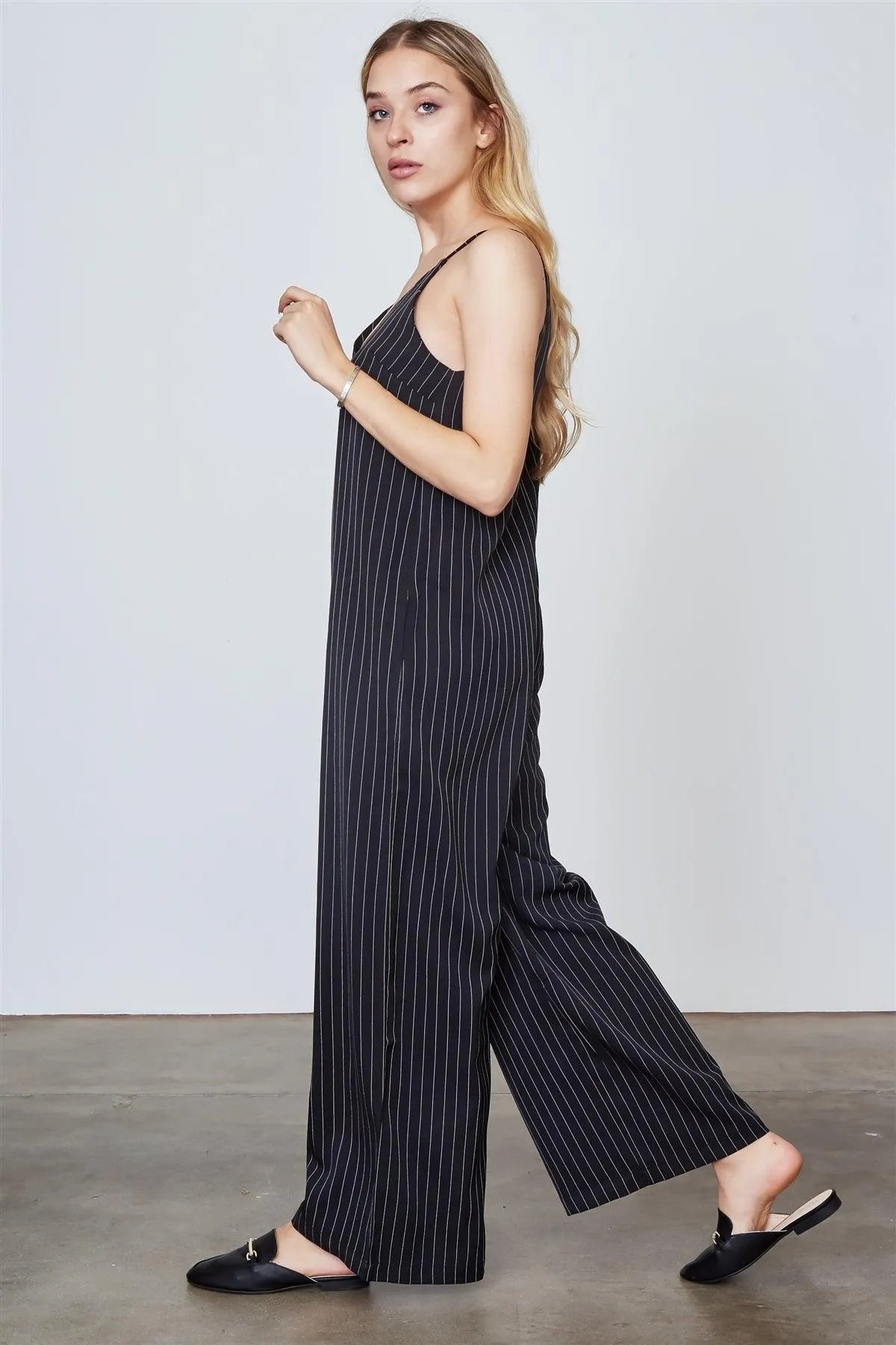 Black Pinstripe Wide Leg Jumpsuit /3-2-1