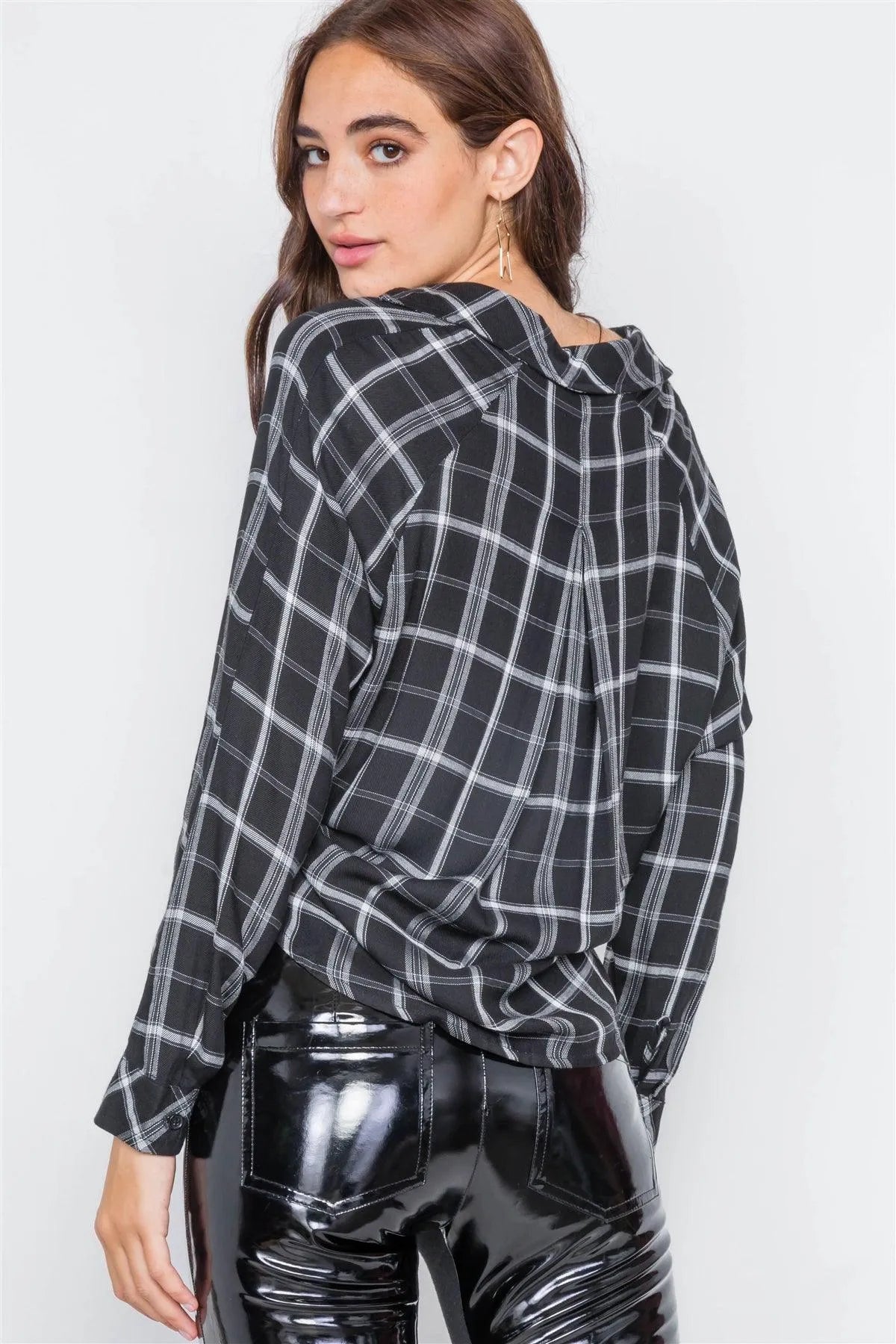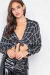 Black Plaid White Stripe V-Neck Cut-Out Crop Top /2-2-2