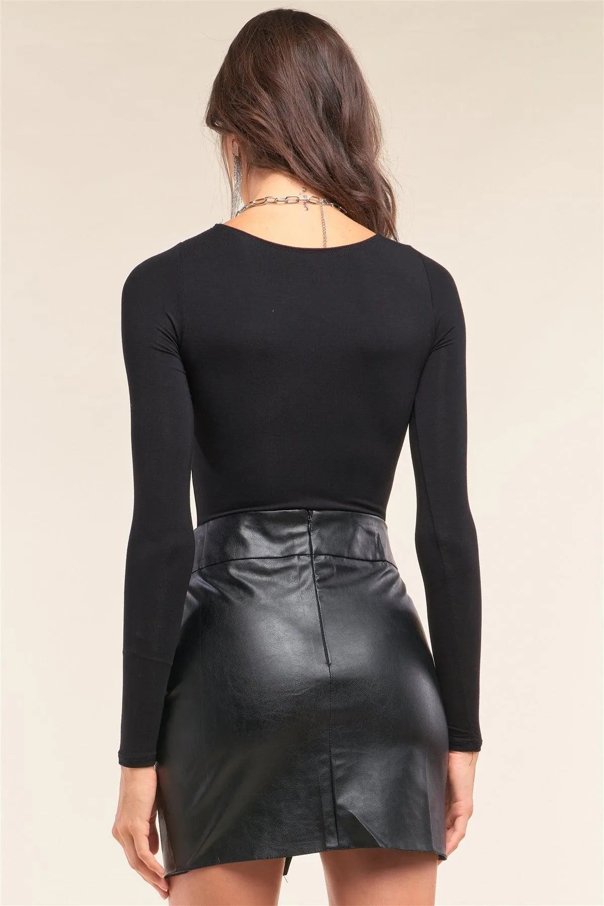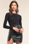 Black Plain Tight Fit Long Sleeve Round Neck Bodysuit /2-2-2-1
