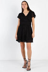 🖤 Item Features: Black, polka dot print, plisse material, v-neckline, flare short sleeves, back hidden zipper and hook & eye closure, lined, mini length, non-sheer, non-stretchy, casual, cute, girlish, chic, elegant