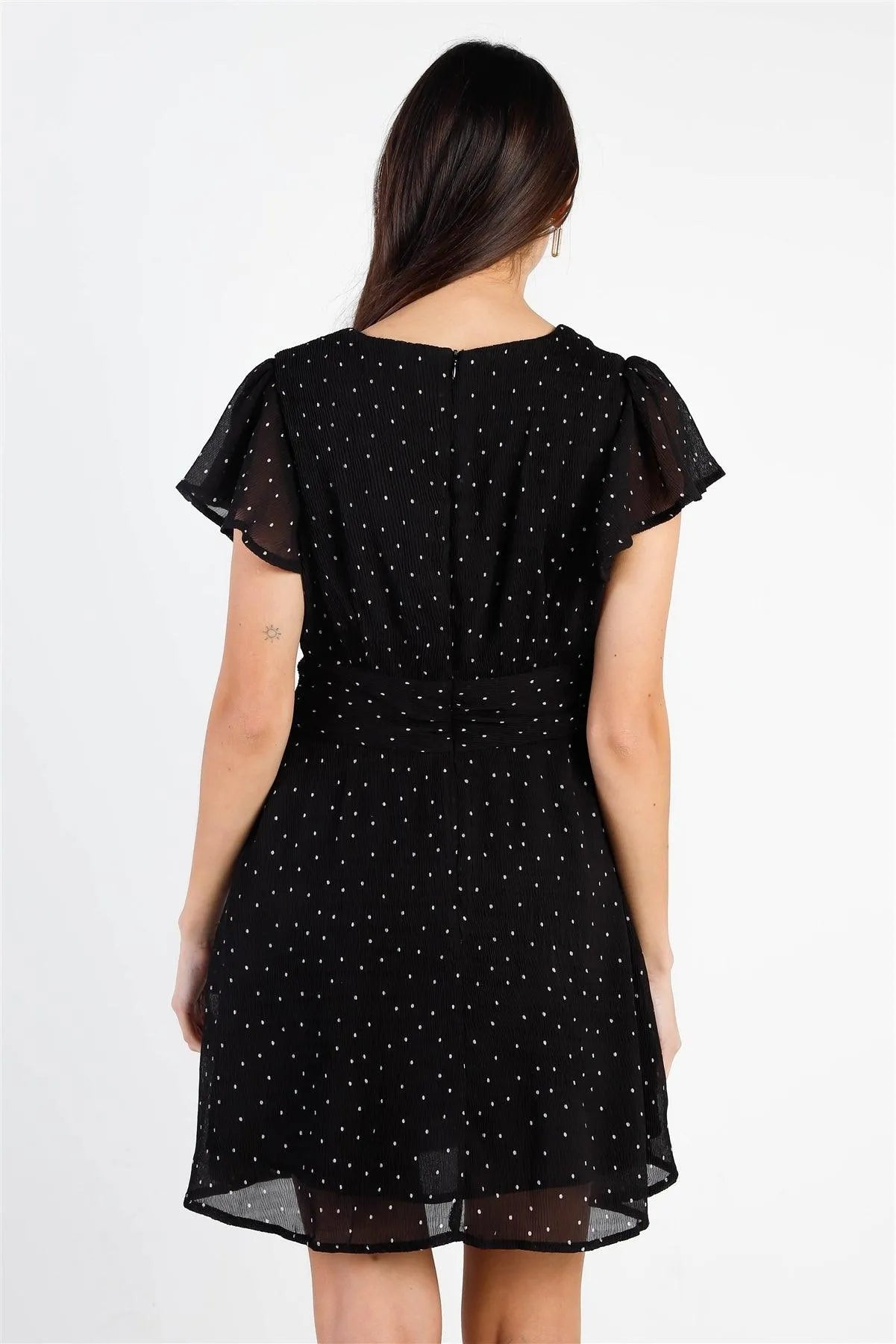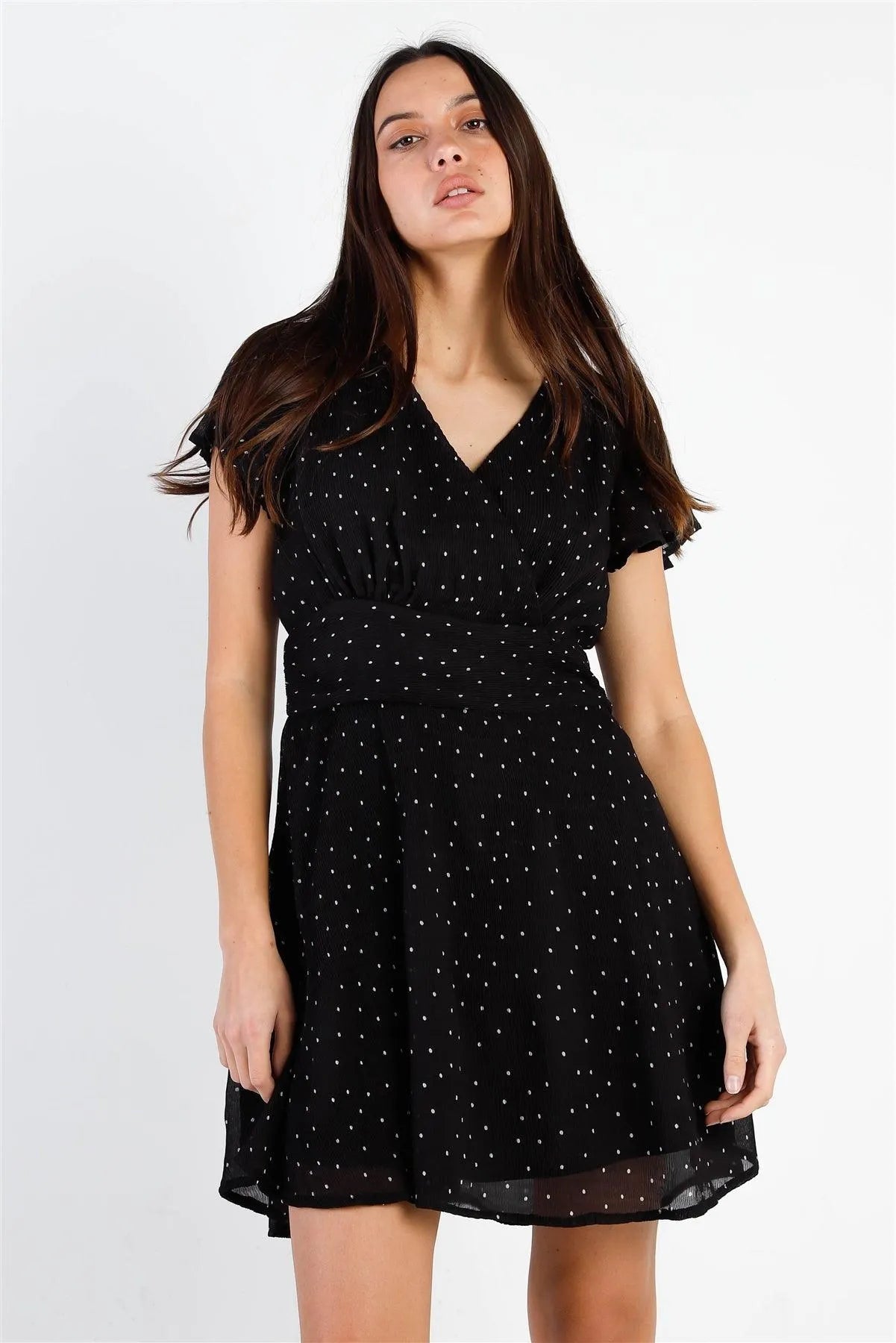 Black Plisse Polka Dot Mini Dress /1-2-2-1