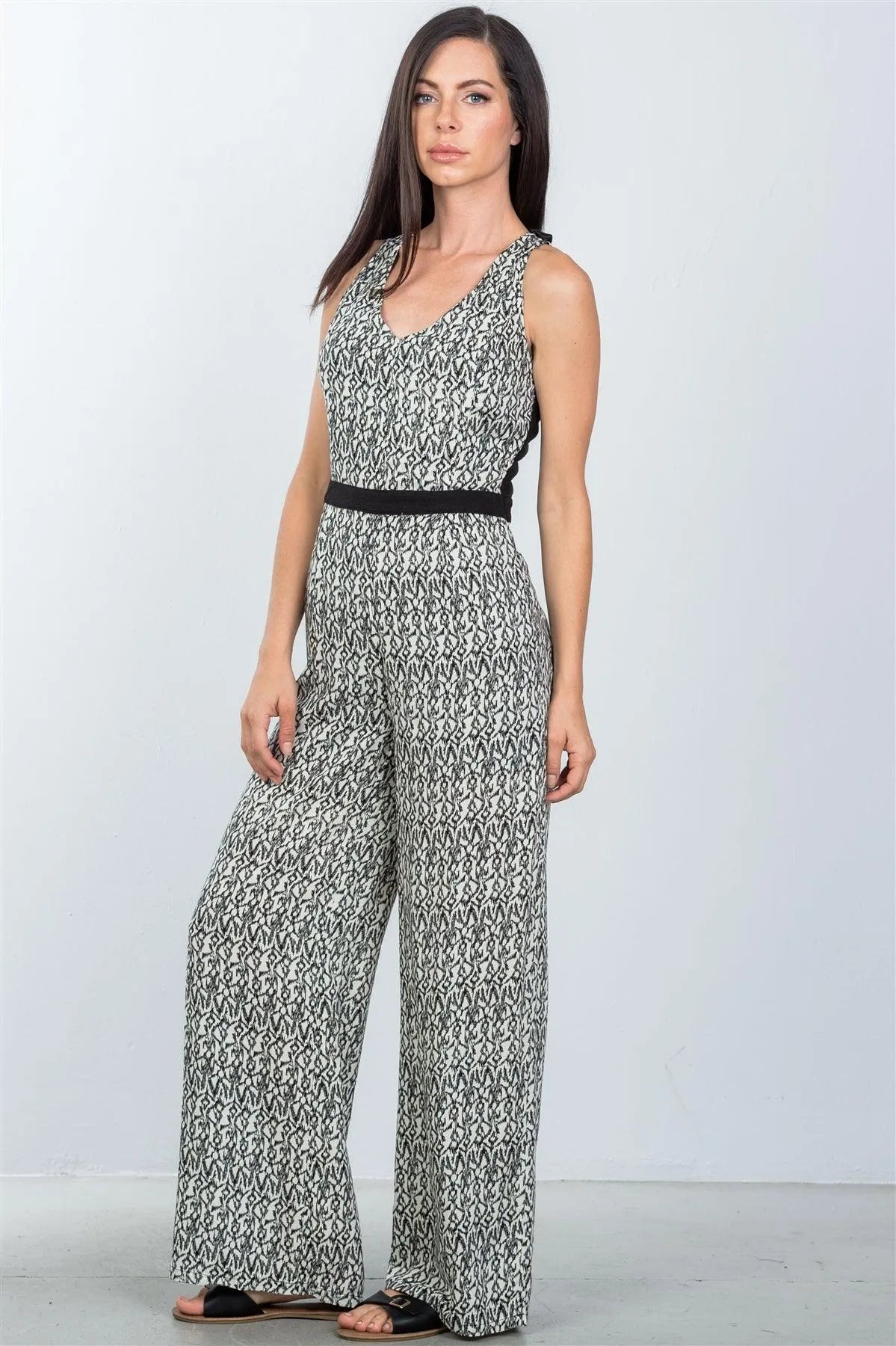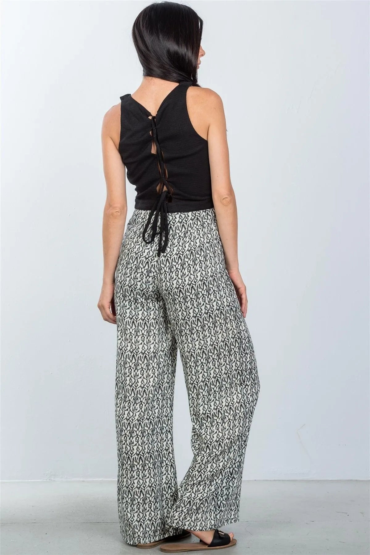Black Printed Back Lace Up Jumpsuit / 3-2-1