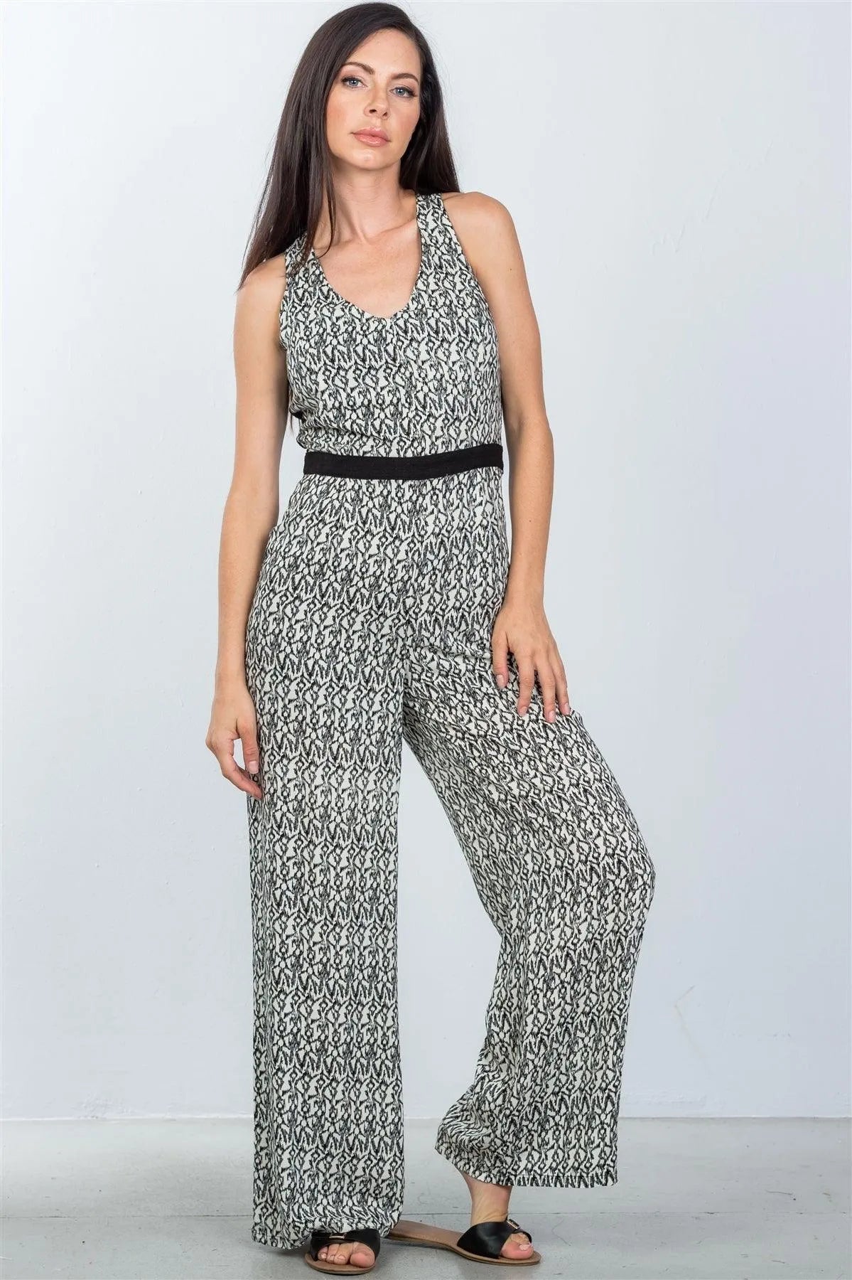 Boho Aztec Print Wide Leg Sleeveless Boutique Fashion JumpsuitVendor:Jade by Jane