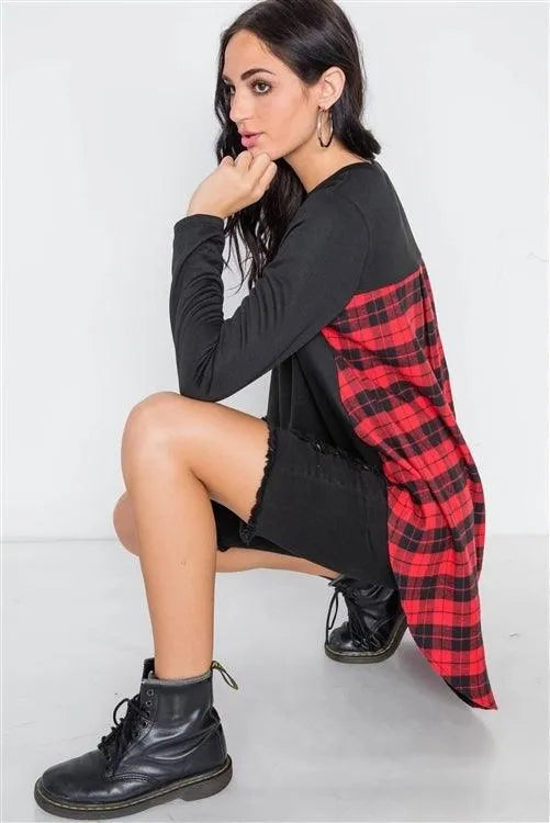 This Red Combo Plaid High Low Knit Top is a versatile and stylish addition to your wardrobe. The high low design adds a modern touch, while the plaid pattern adds a timeless appeal. With its soft knit fabric, this top offers both comfort and fashion, perfect for any occasion.