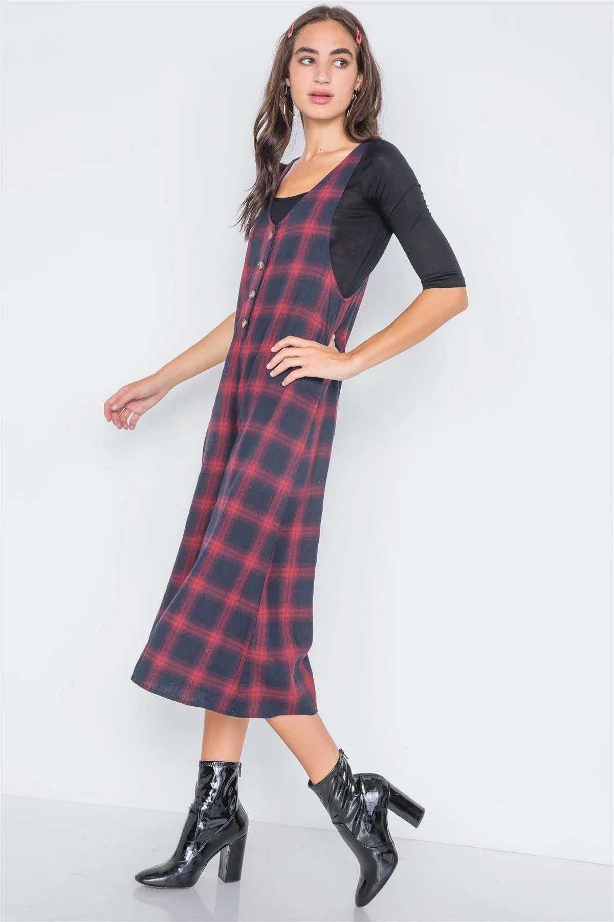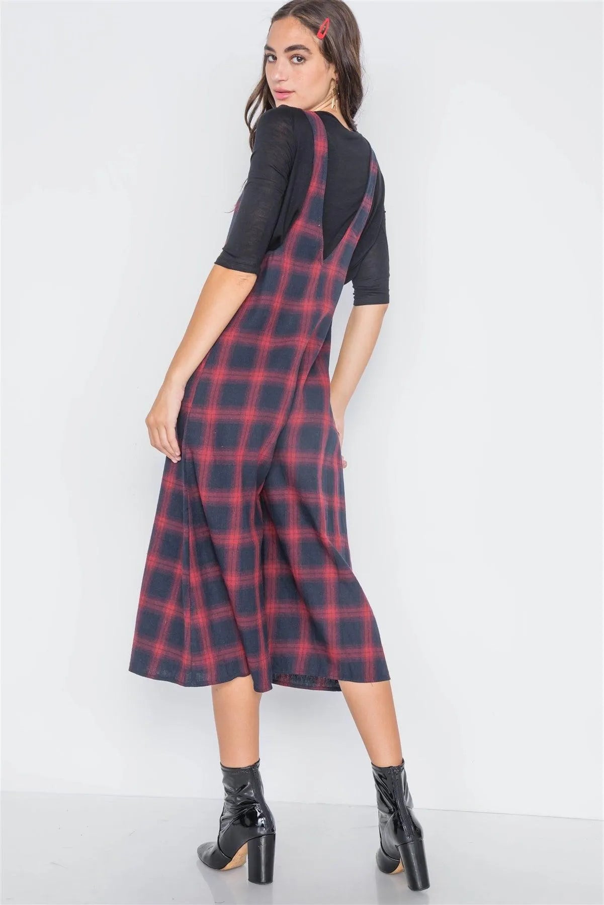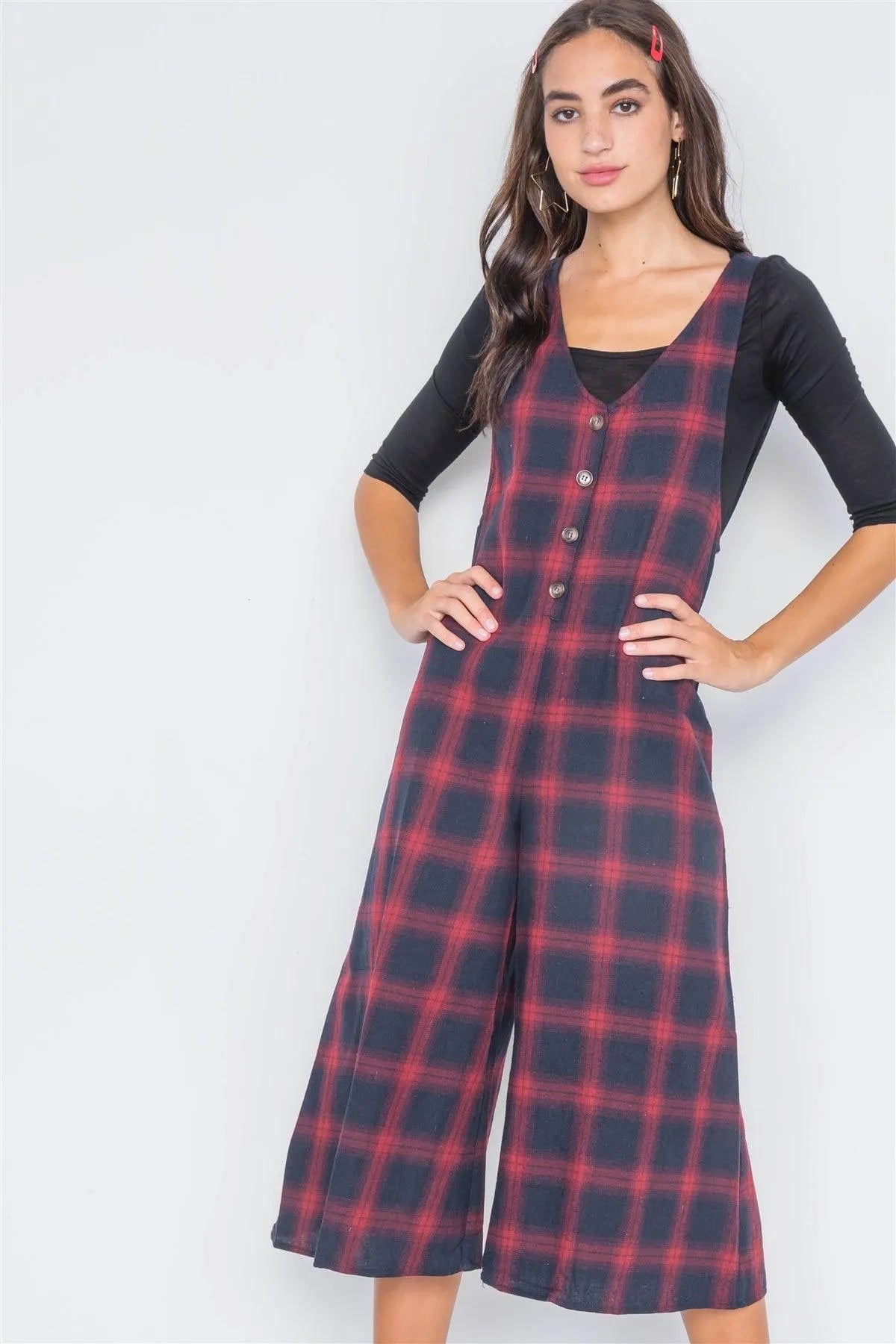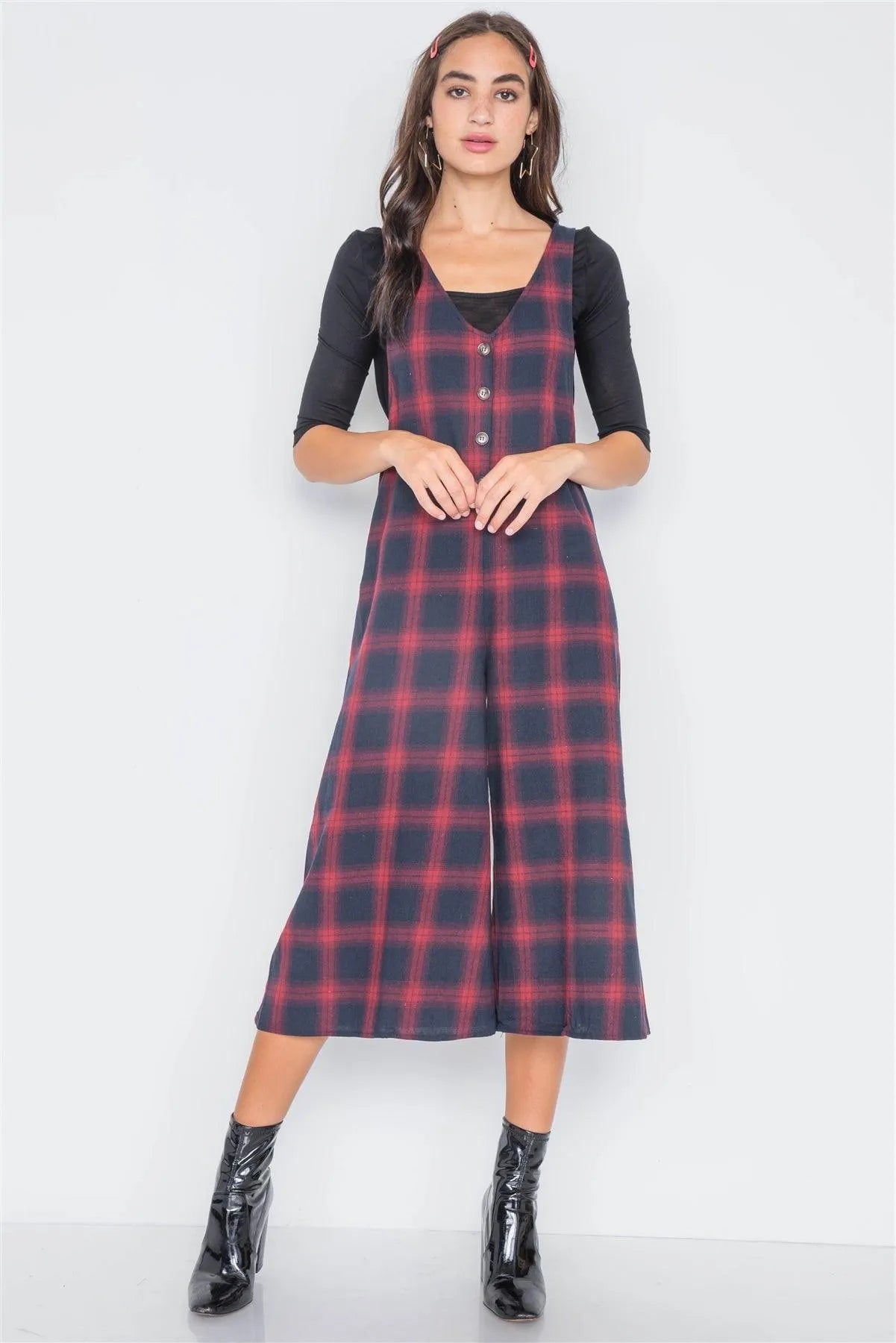 Black Red Plaid Wide Leg Overall Jumpsuit /3-2-1
