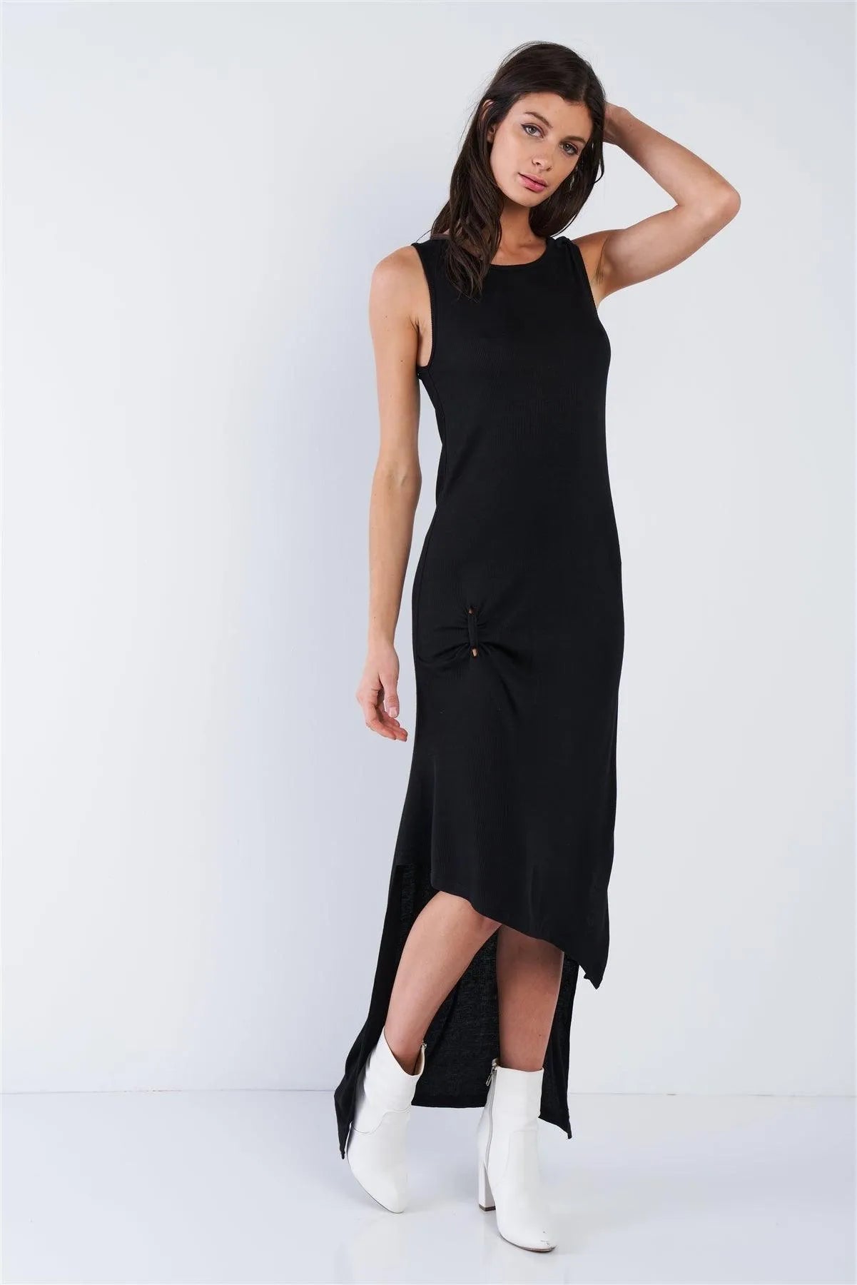 Black Ribbed Asymmetrical High-Low Maxi Dress