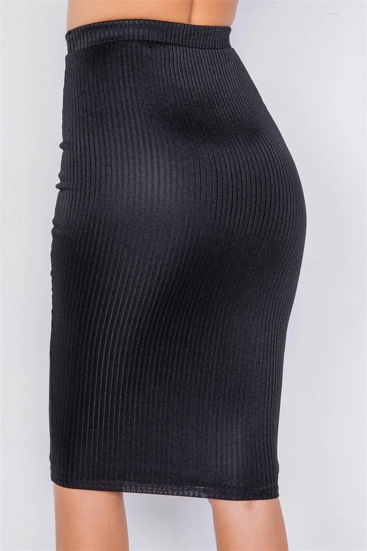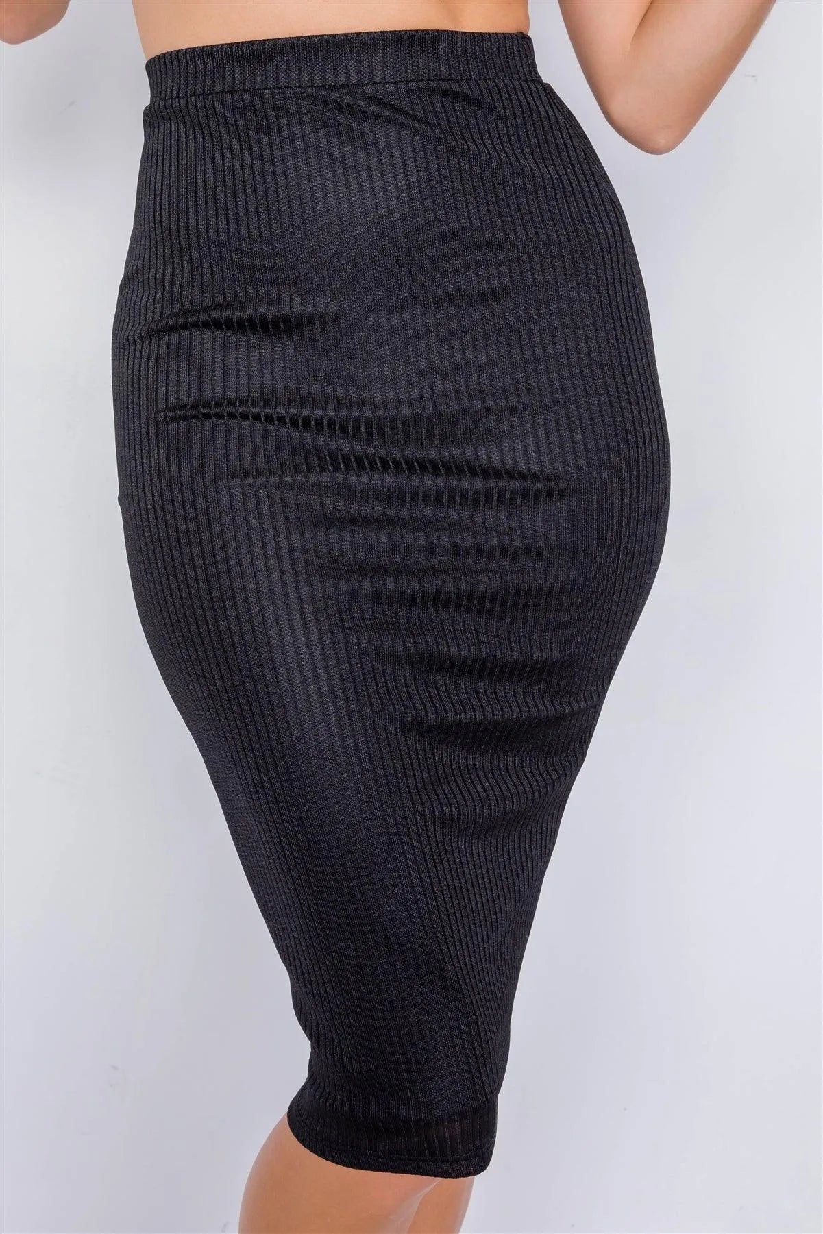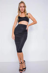 Black Ribbed Square Neck Crop Top & Mini Bodycon Skirt Set /3-2-1