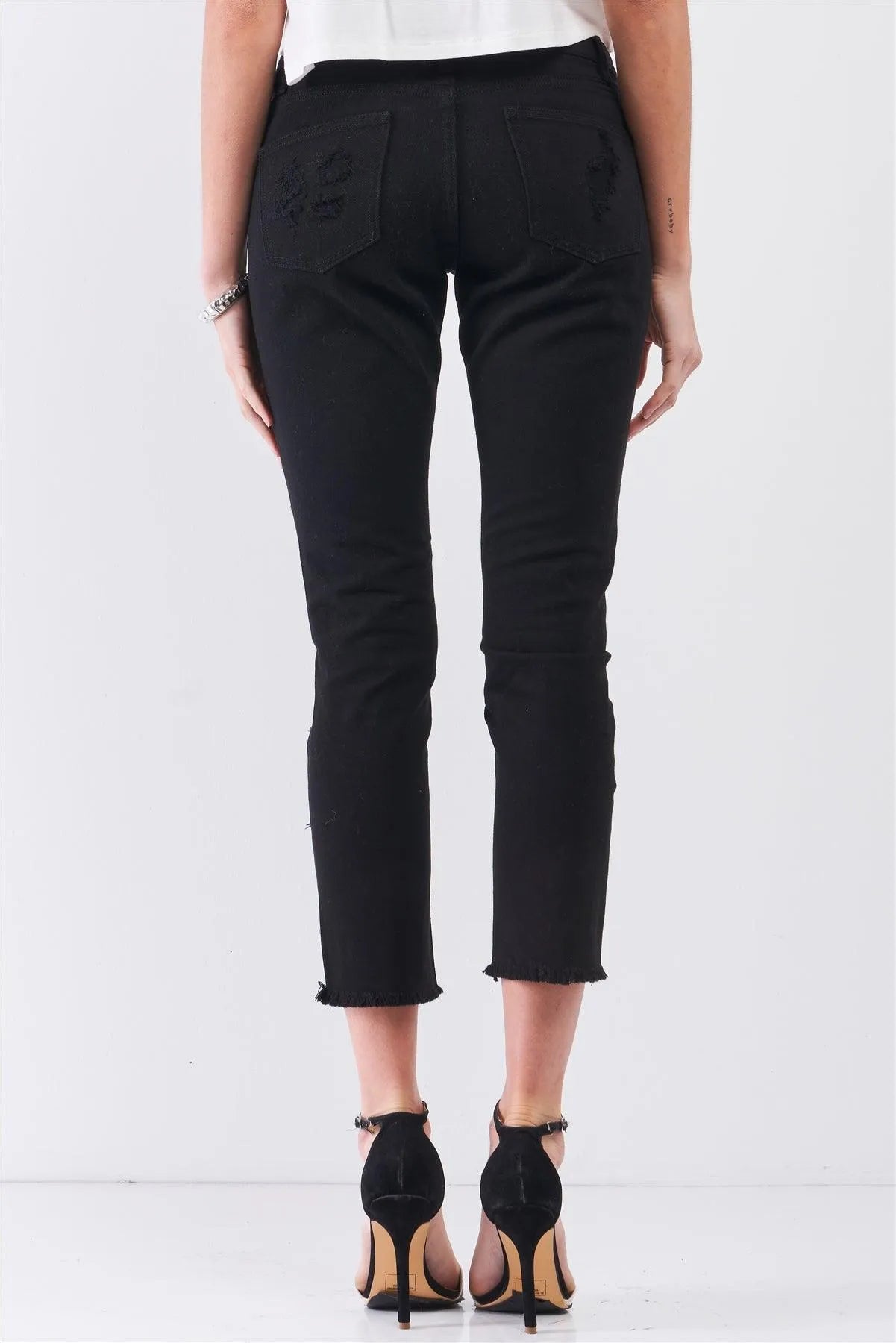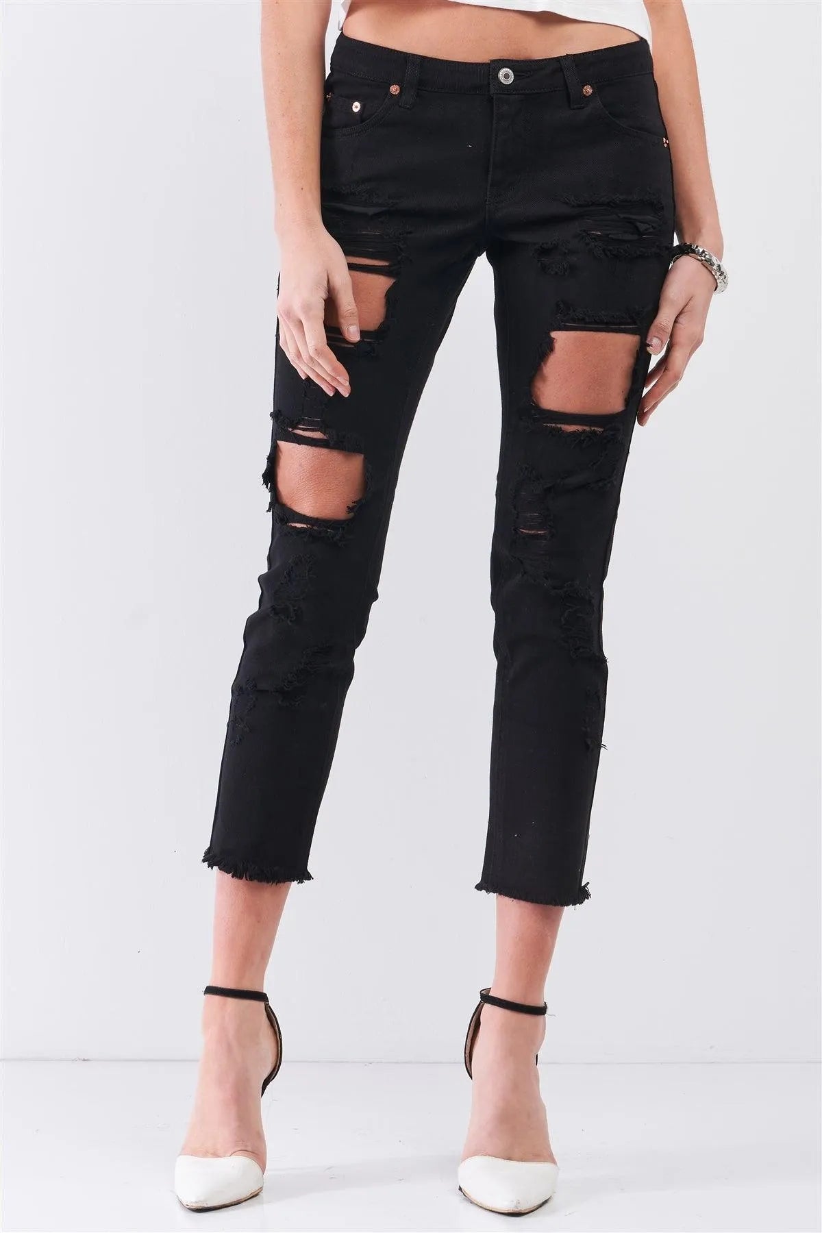 Black Ripped Destroyed Low-Mid Rise Denim Jeans /3-2-1
