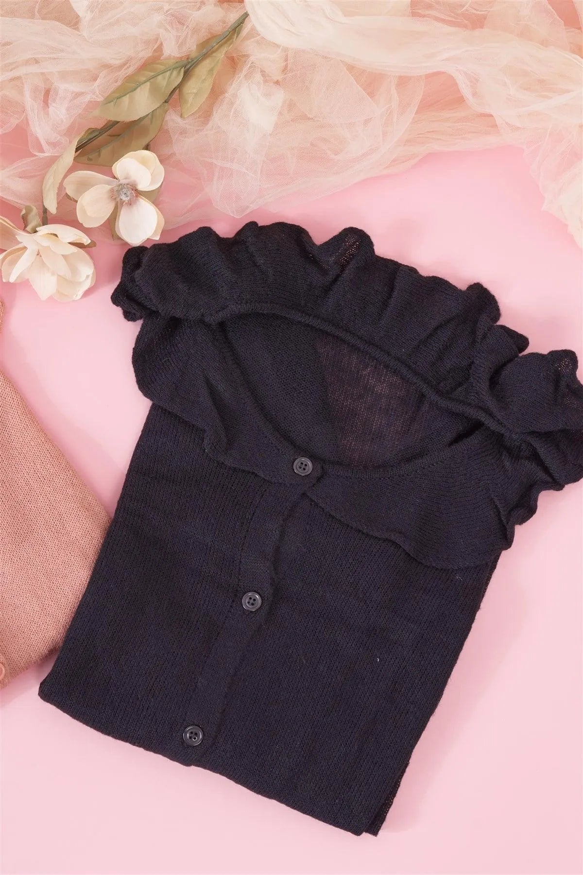 Black Round Neck Bertha Collar Button-Front Cardigan /3-2-1