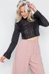 Smocked Long Sleeve Sheer Crop Top Trendy Boutique Fashion TopVendor:HYFVE