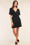 Black Deep Plunge V-Neck Self-Tie Wrap Flare Sleeve Mini Dress /1-2-2