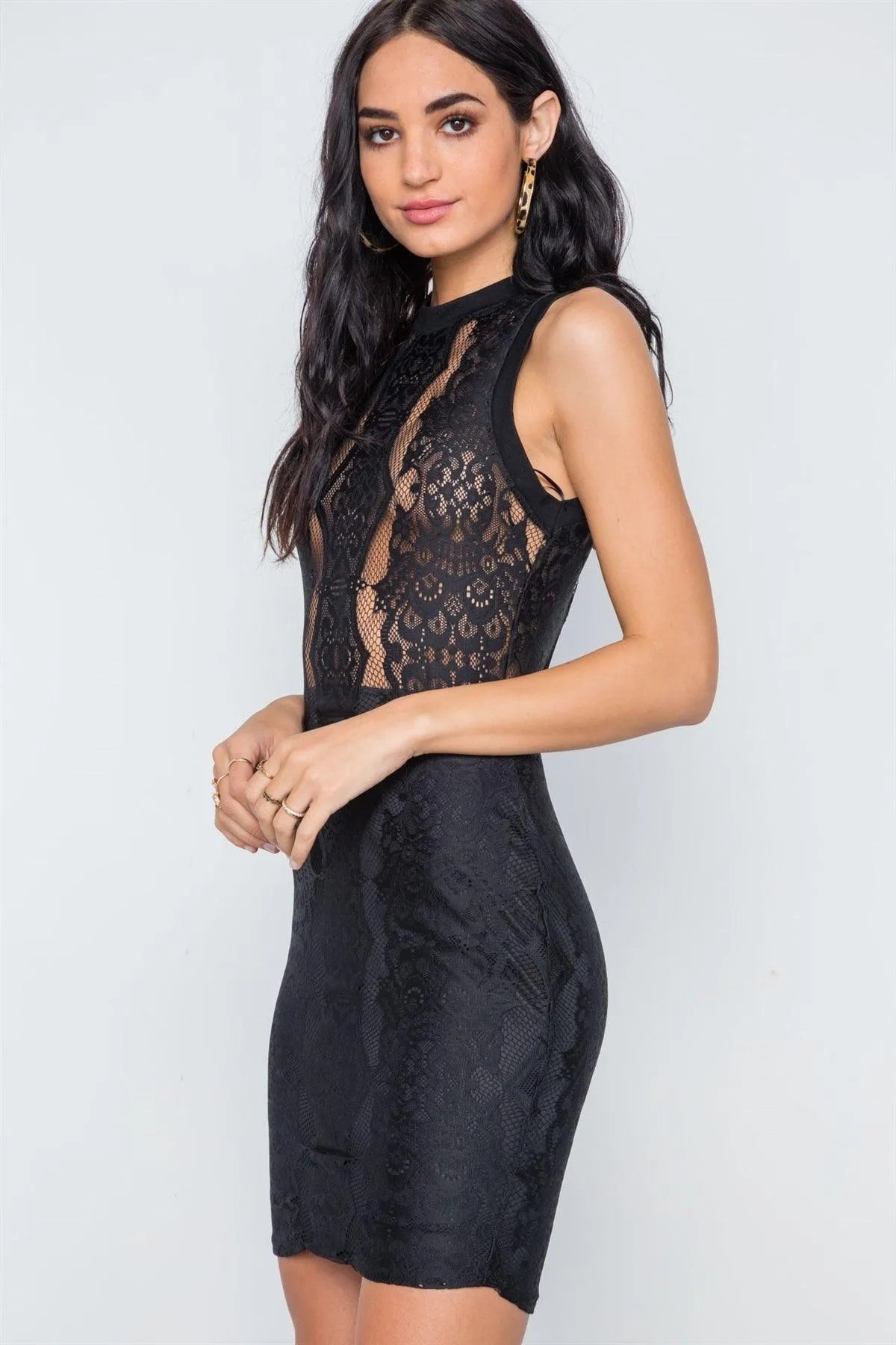 Black Sheer Sleeveless Bodycon Mini Dress /3-2-1