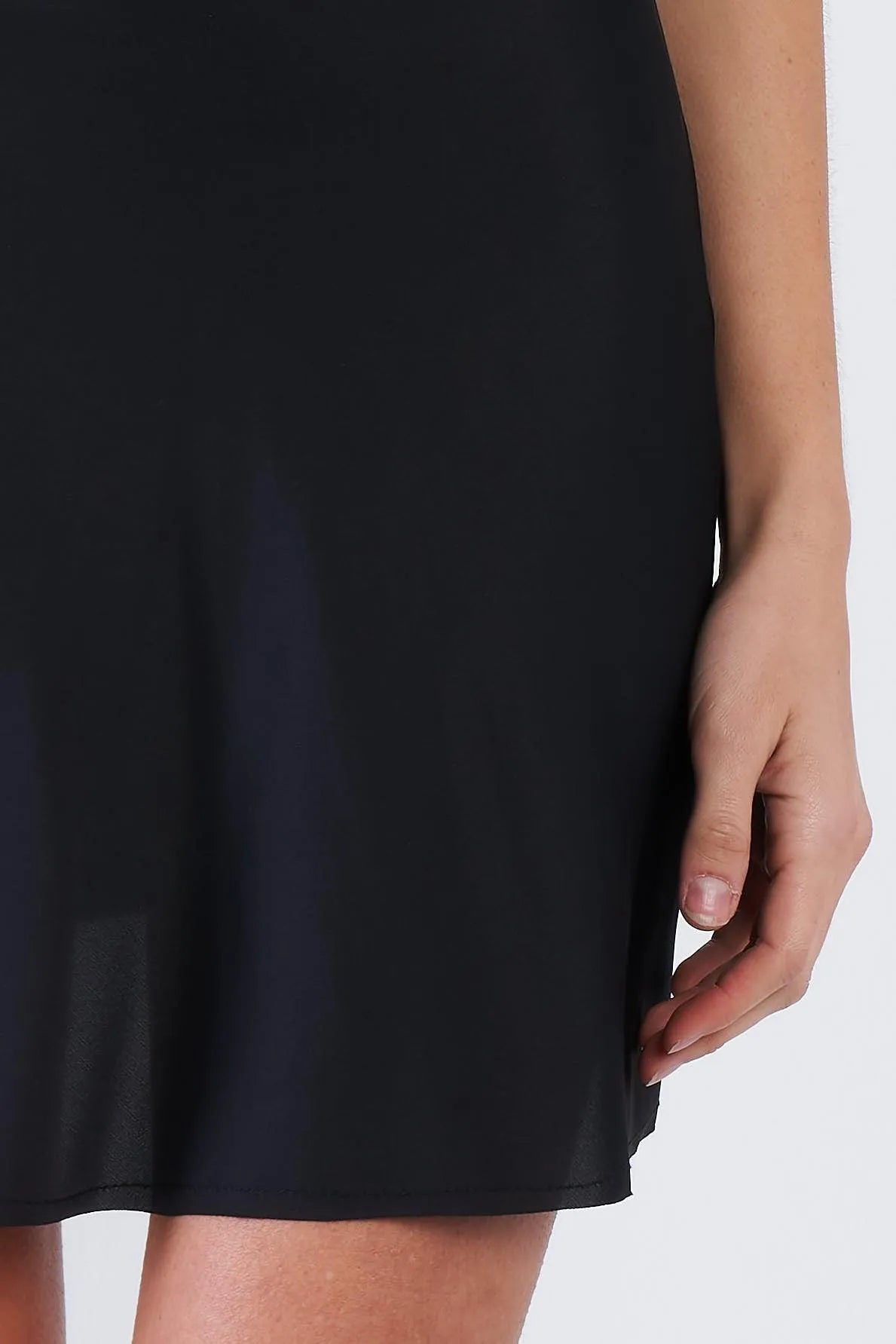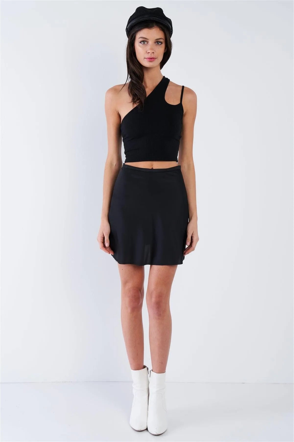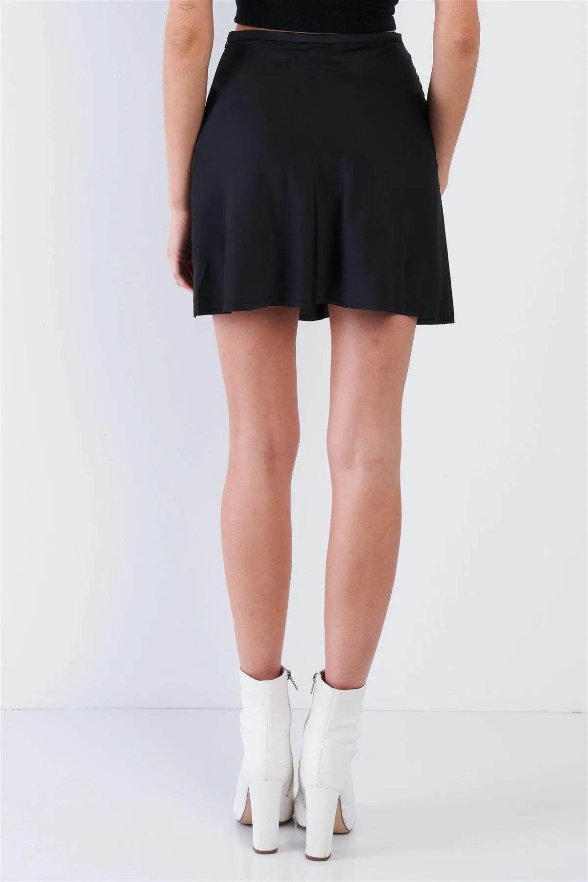 Black Silk Flare Raw Hem Solid Mini Skirt /3-2-1