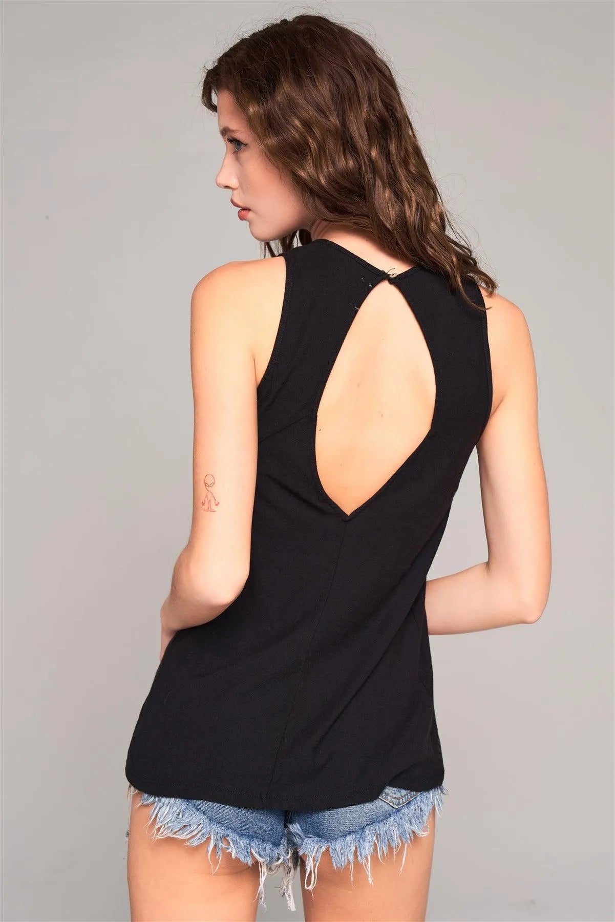 Black Sleeveless Crew Neck Cut-Out Back Detail Longline Tank Top /1-2-2-1
