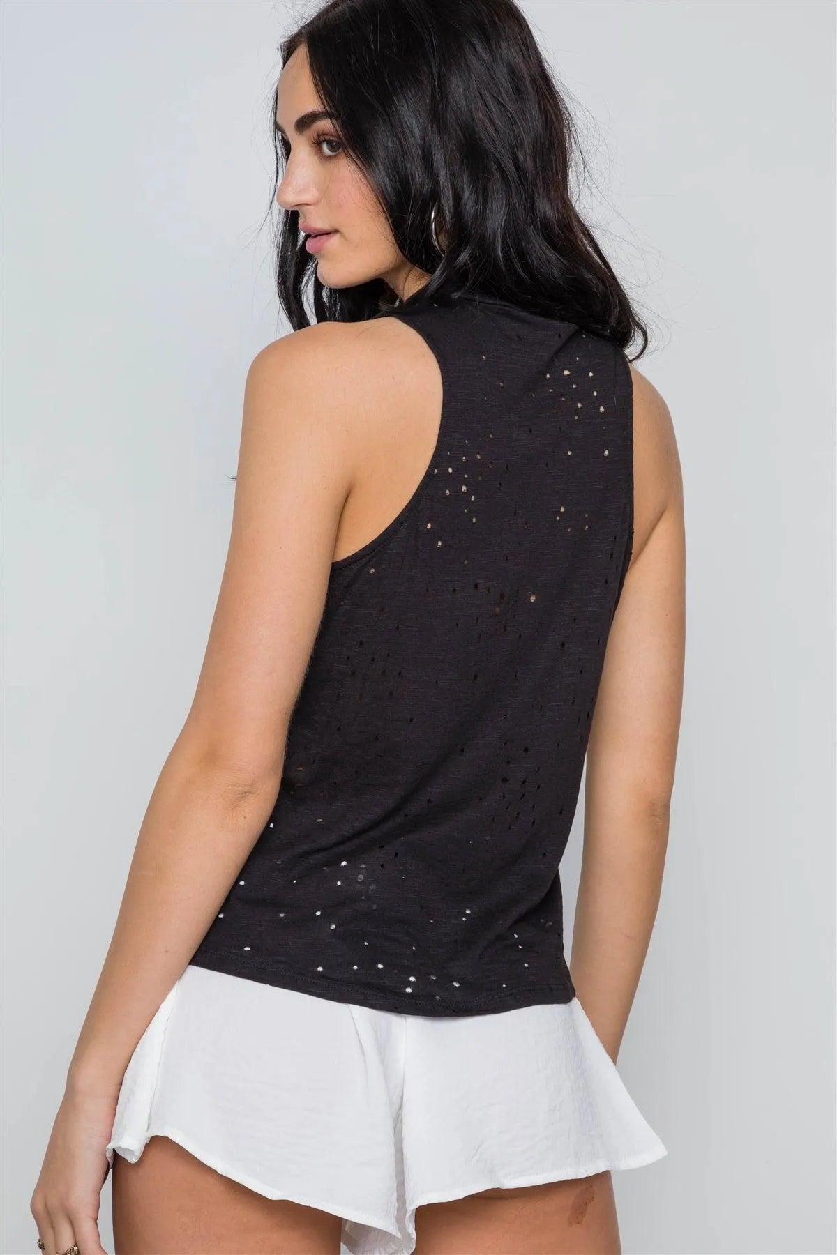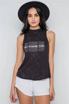 Black Sleeveless Distressed Graphic Print Top /3-2-1