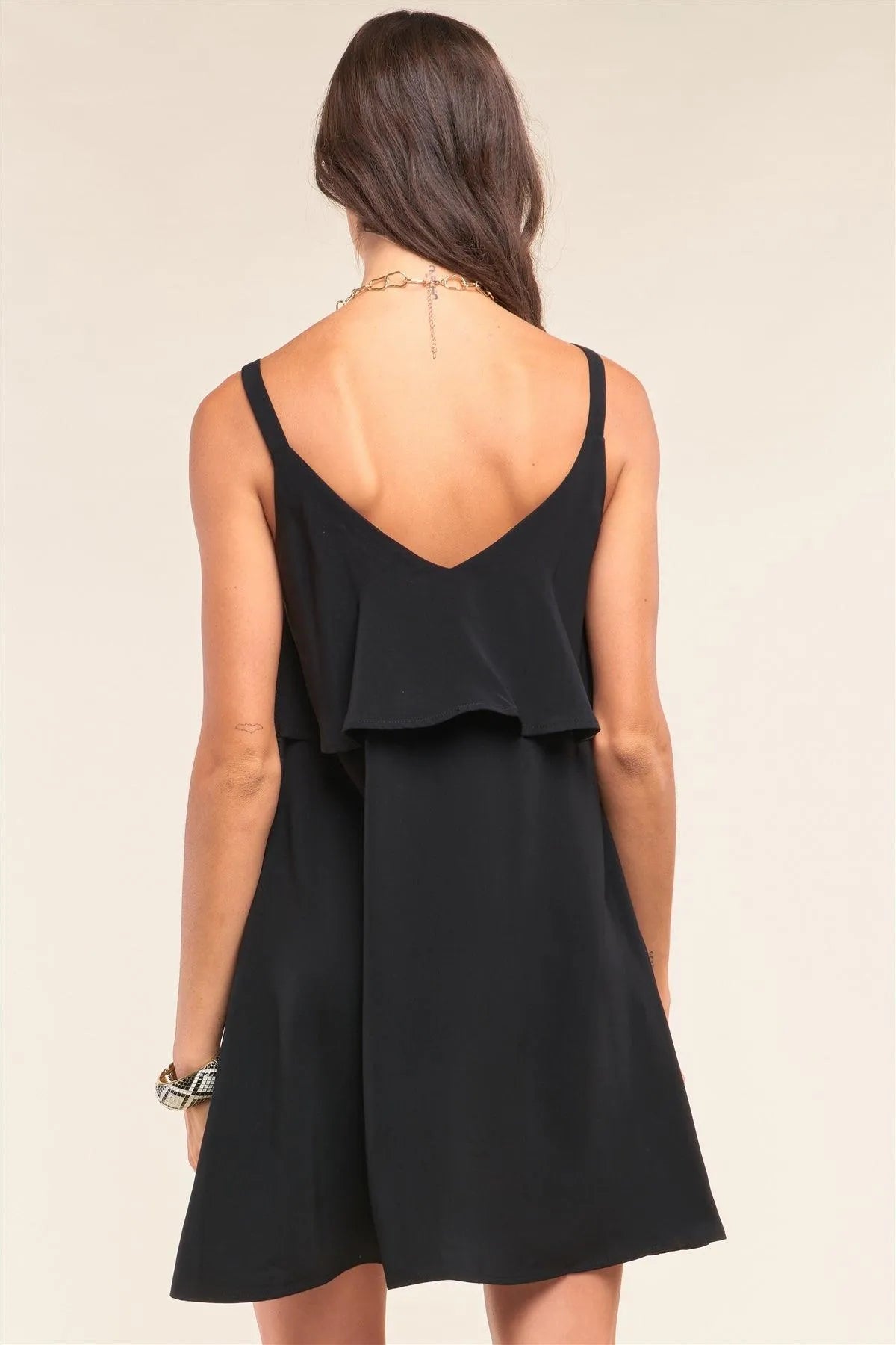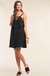 Black Sleeveless Lace-Up Detail V-Neck Layered Mini Dress /1-2-2