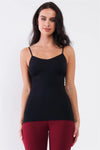 Black Solid Sleeveless V-Neck Ribbed Tight Cami Top /3-3