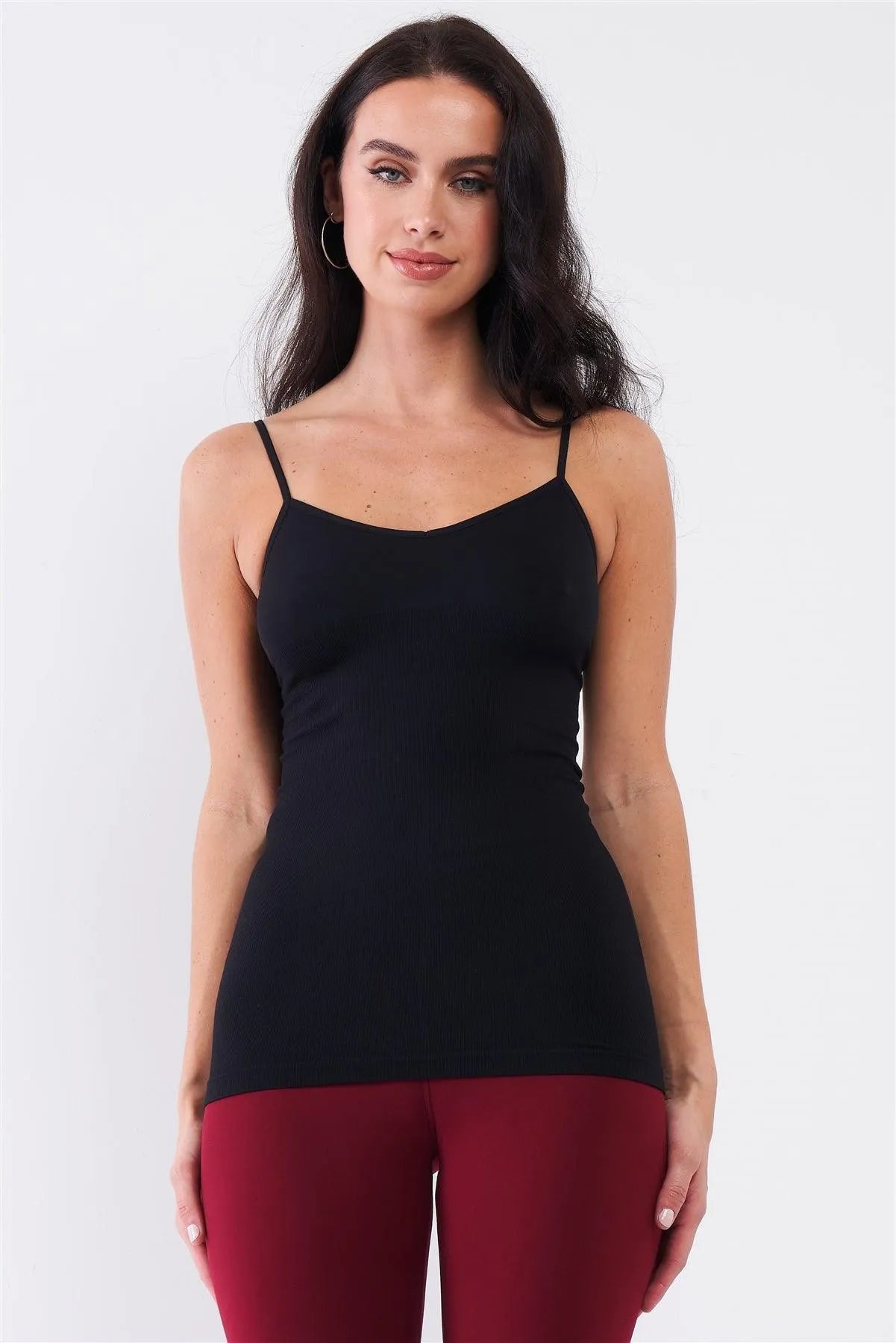 🖤 Item Features: Black, solid, sleeveless, adjustable shoulder straps, soft V-neck, ribbed, tight fitting, very stretchy, unlined, non-sheer, basic, casual, comfy, lounge wear, sportswear, activewear, yoga & work out