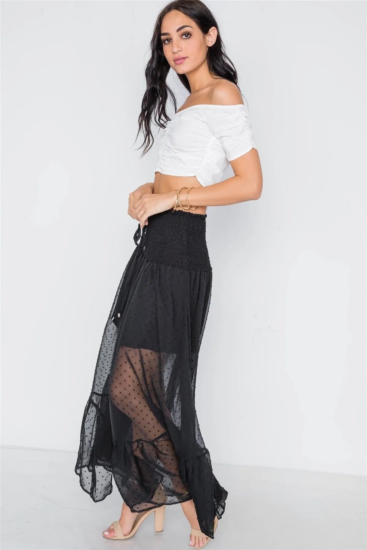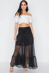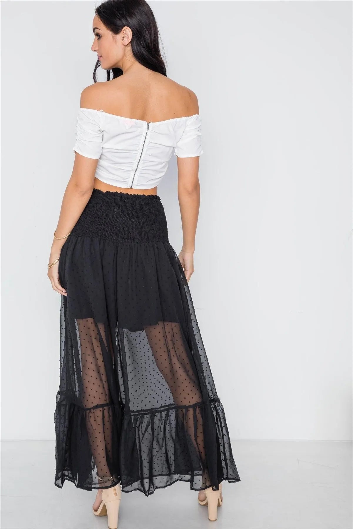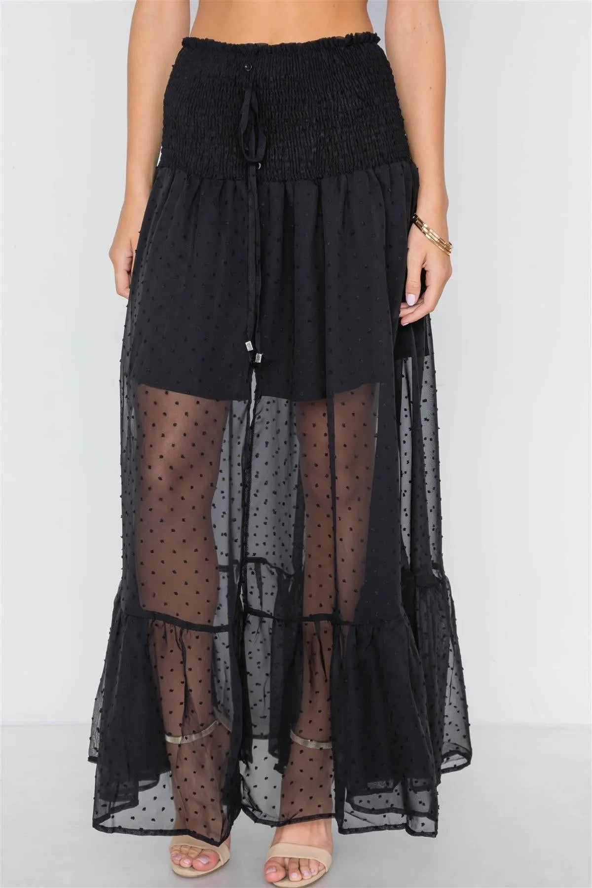 Black Smocked High-Waist Sheer Maxi Skirt /1-3-2-1