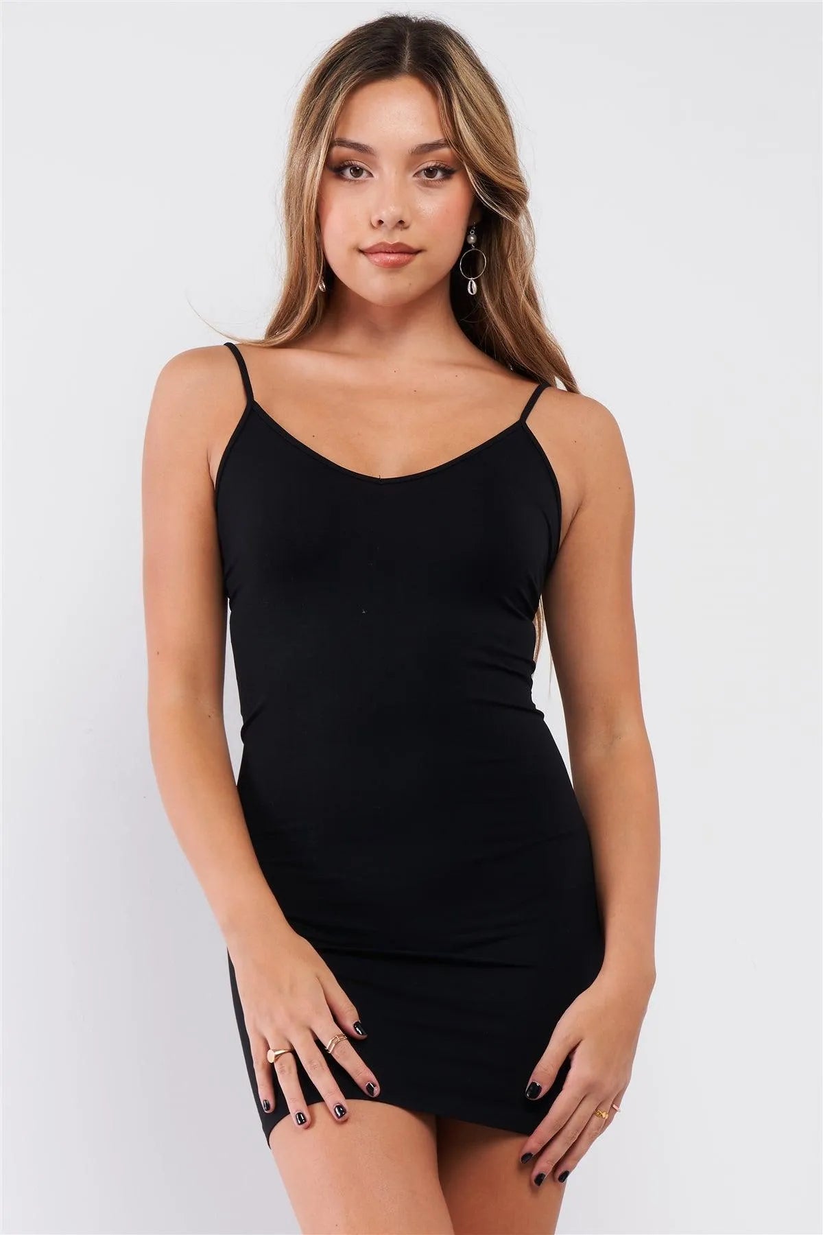 Black Solid Sleeveless Fitted Slip Cami Underdress /3-3