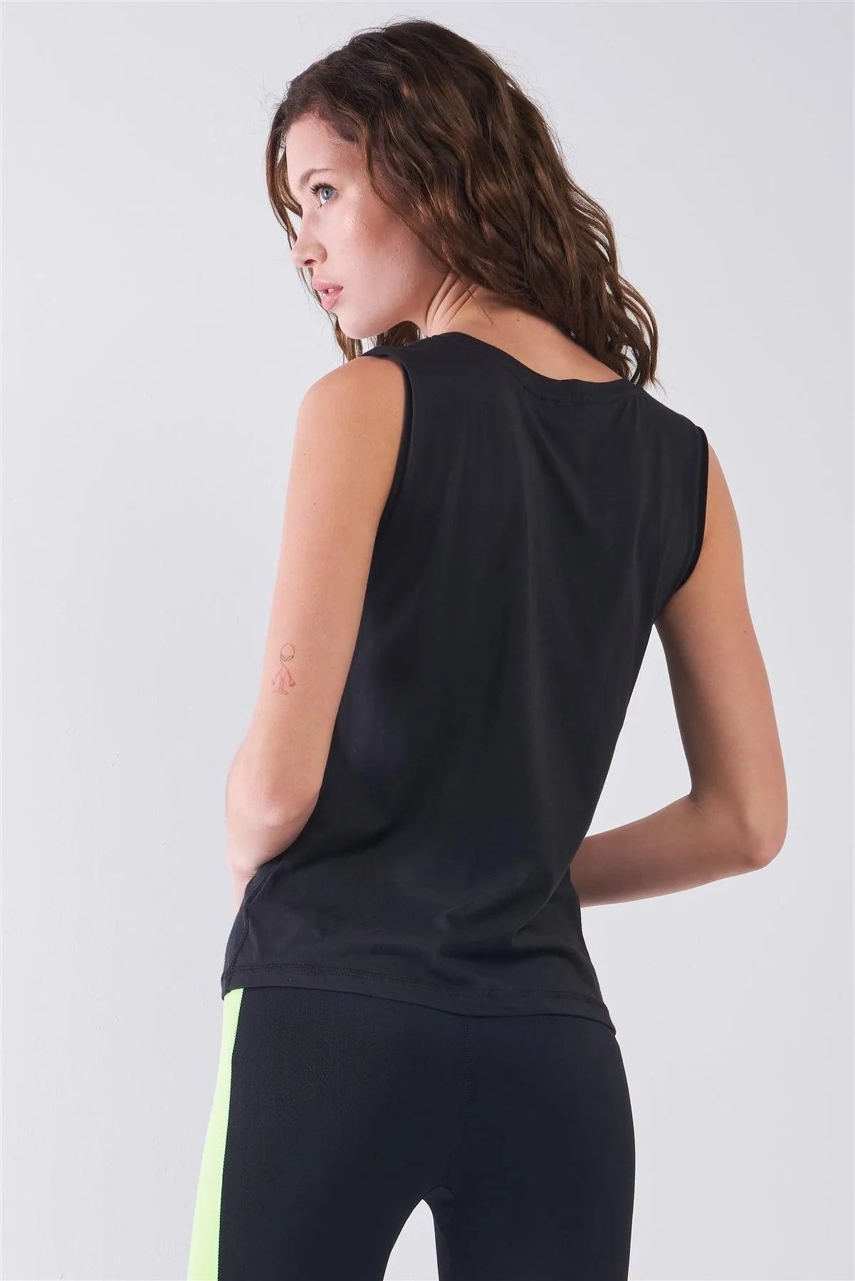 🖤Item Features: Black, solid, sleeveless, raw hem shoulder line detail, round neckline, relaxed fit, unlined, stretchy, not see through, basic, casual, comfy, breathable, eco, 100% cotton, sportswear, activewear, yoga & gym look, minimalistic design, spring/summer collection