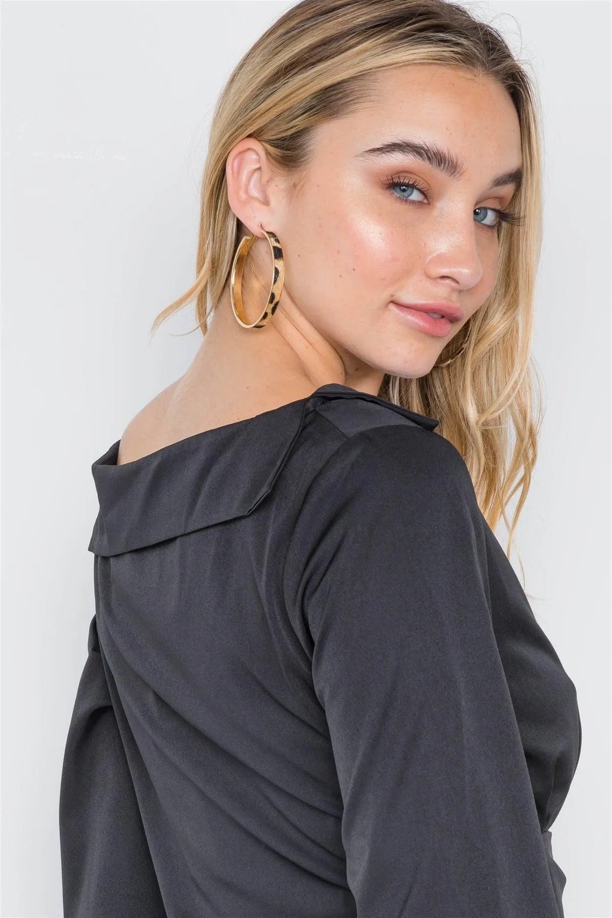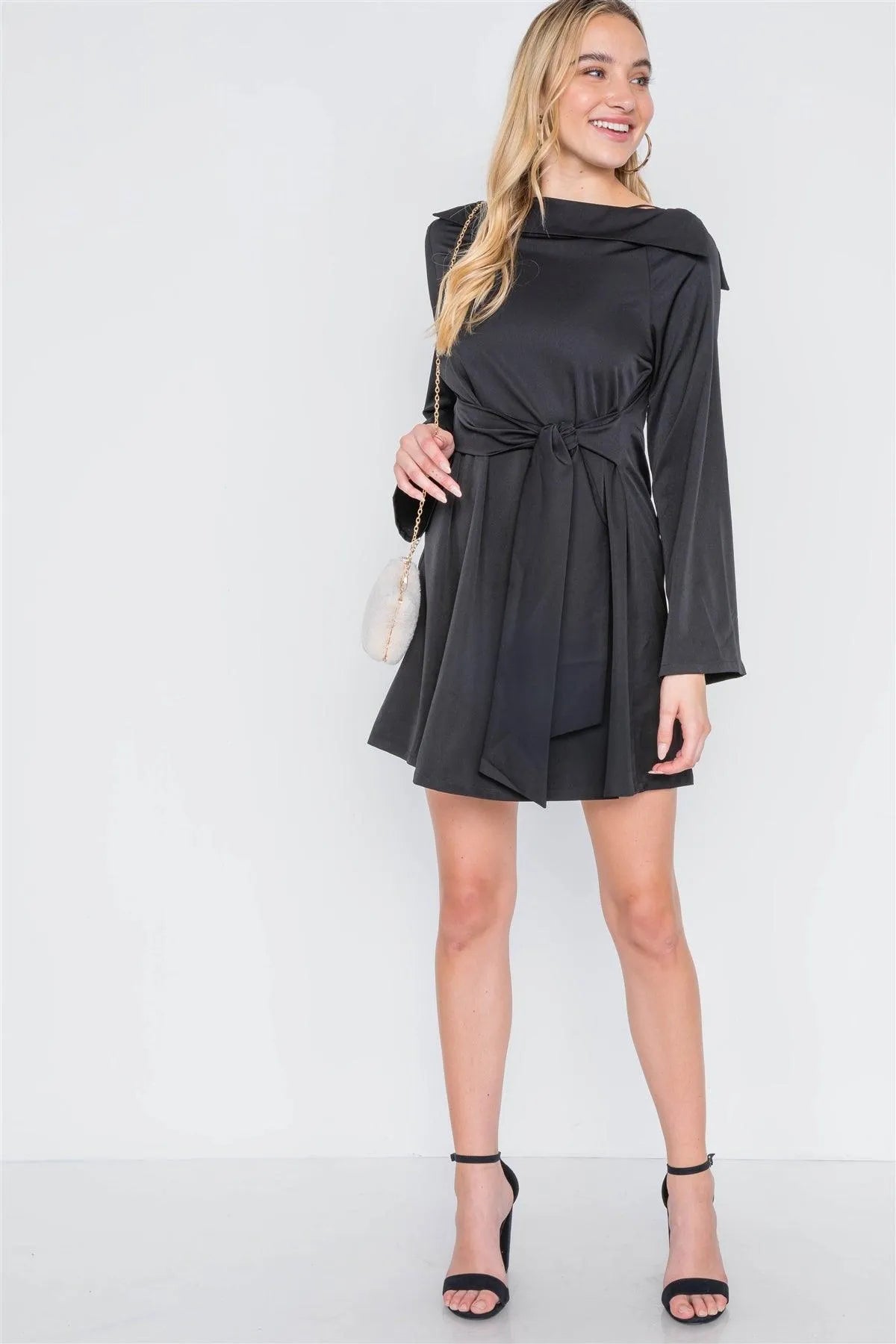 Black Straight Neck Solid Front-Tie Dress /2-3-2