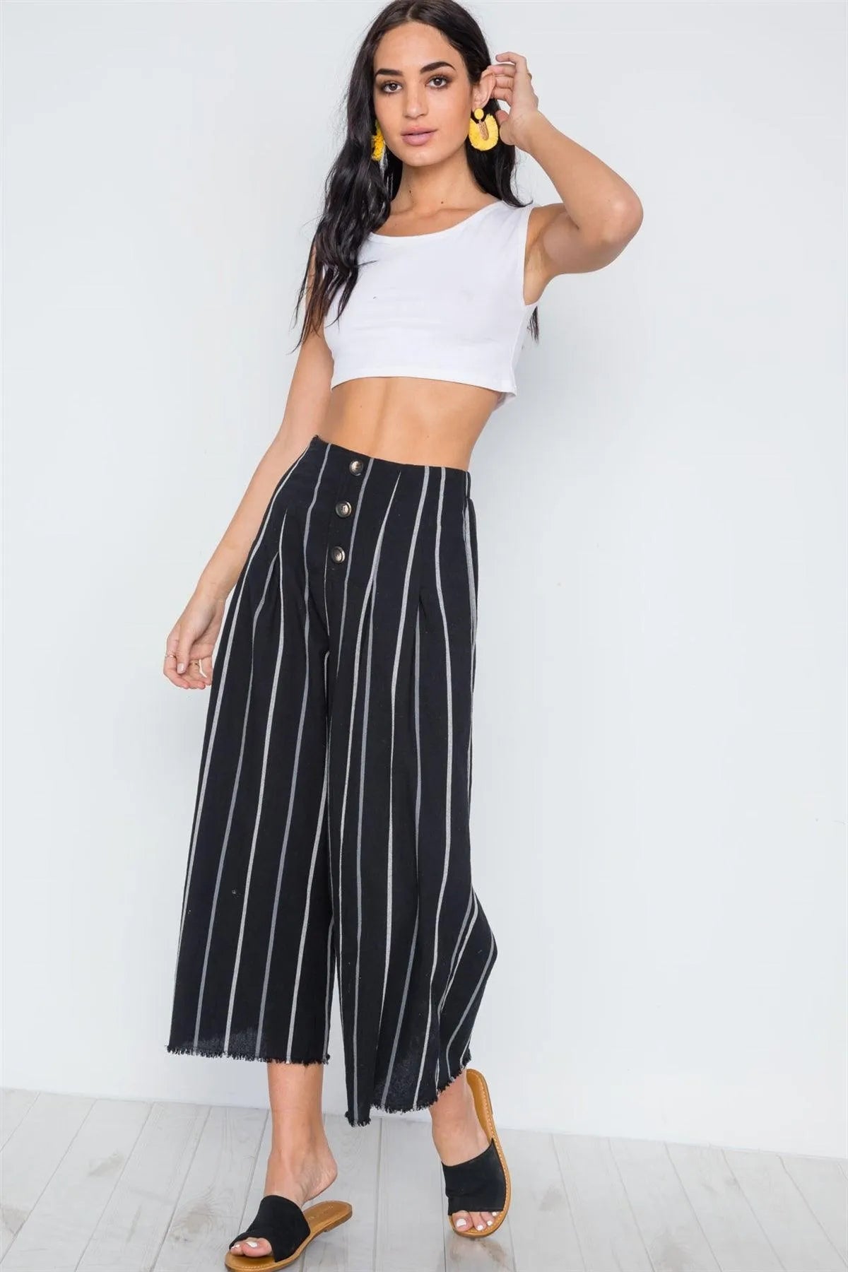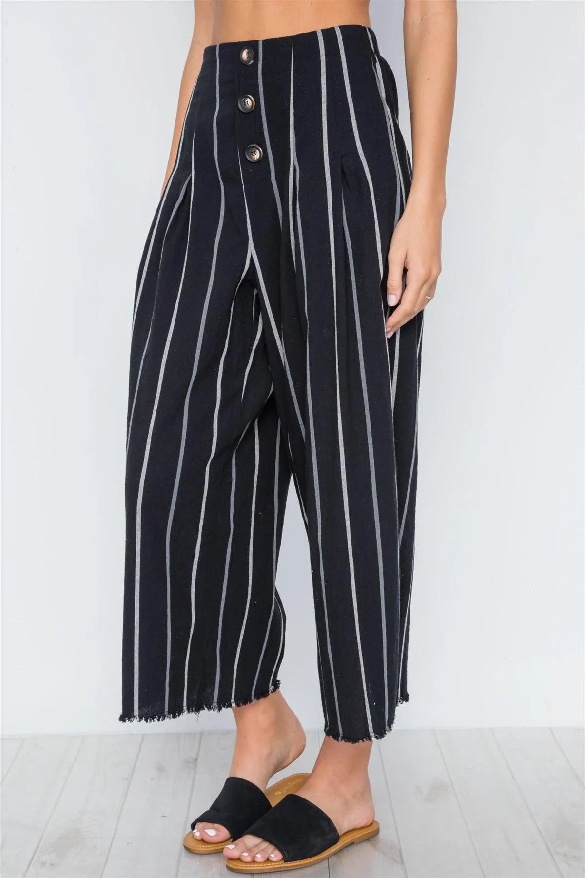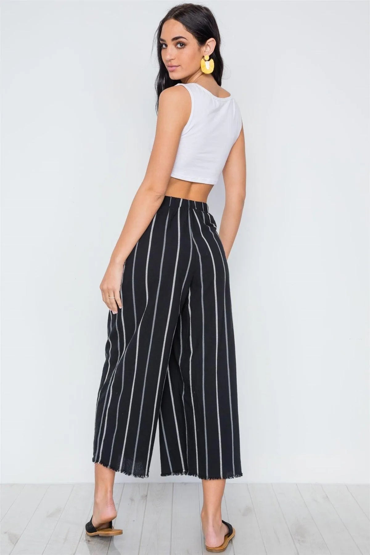 Black Stripe High-Waist Wide Leg Boho Pants /3-2-1