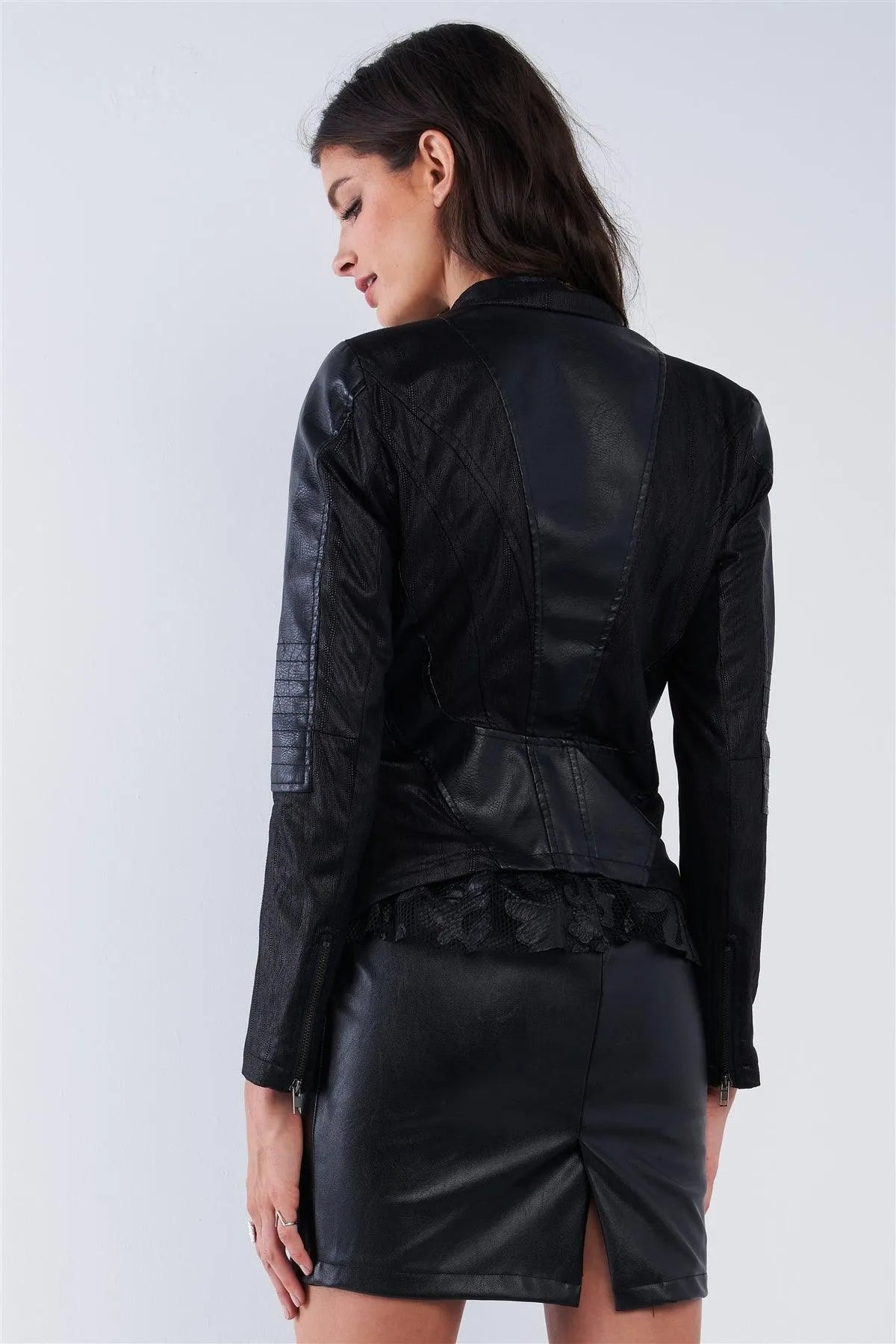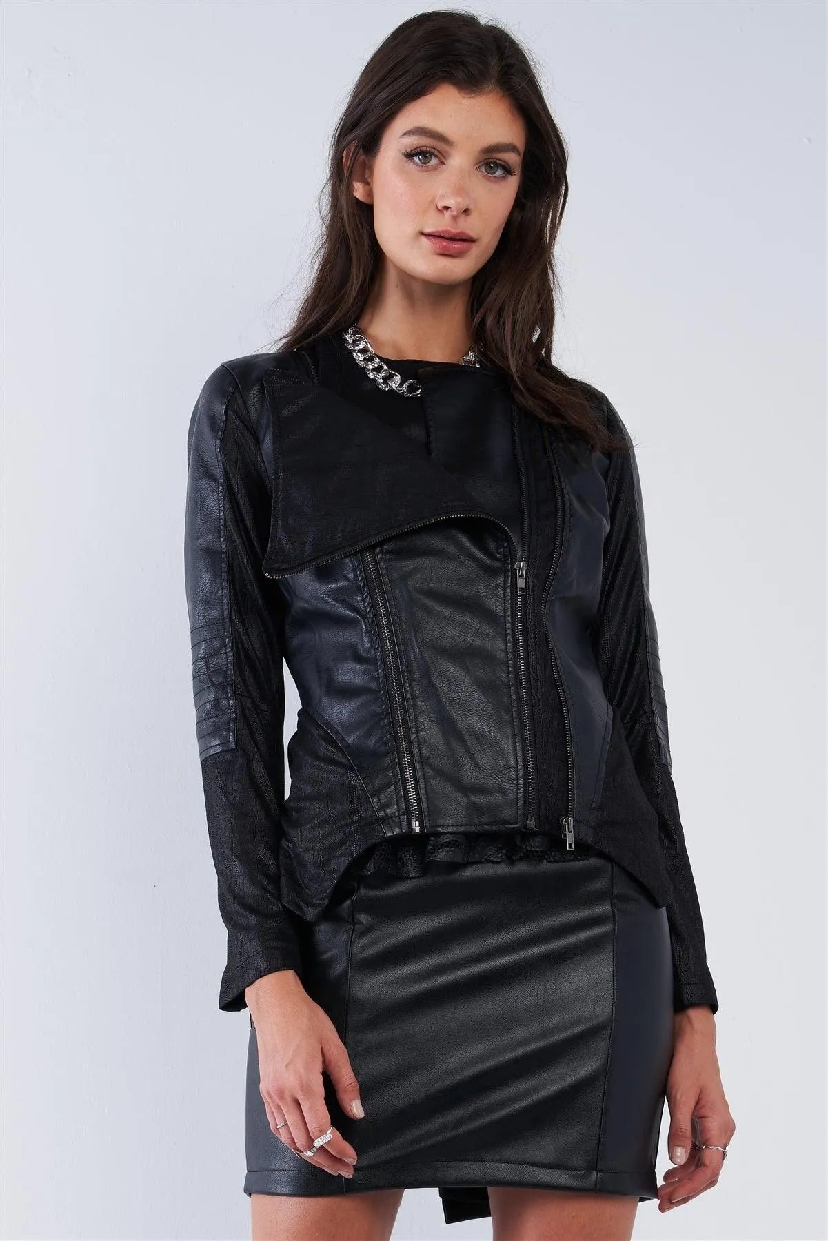 Black Suede & Vegan Leather Moto Jacket /2-2-2