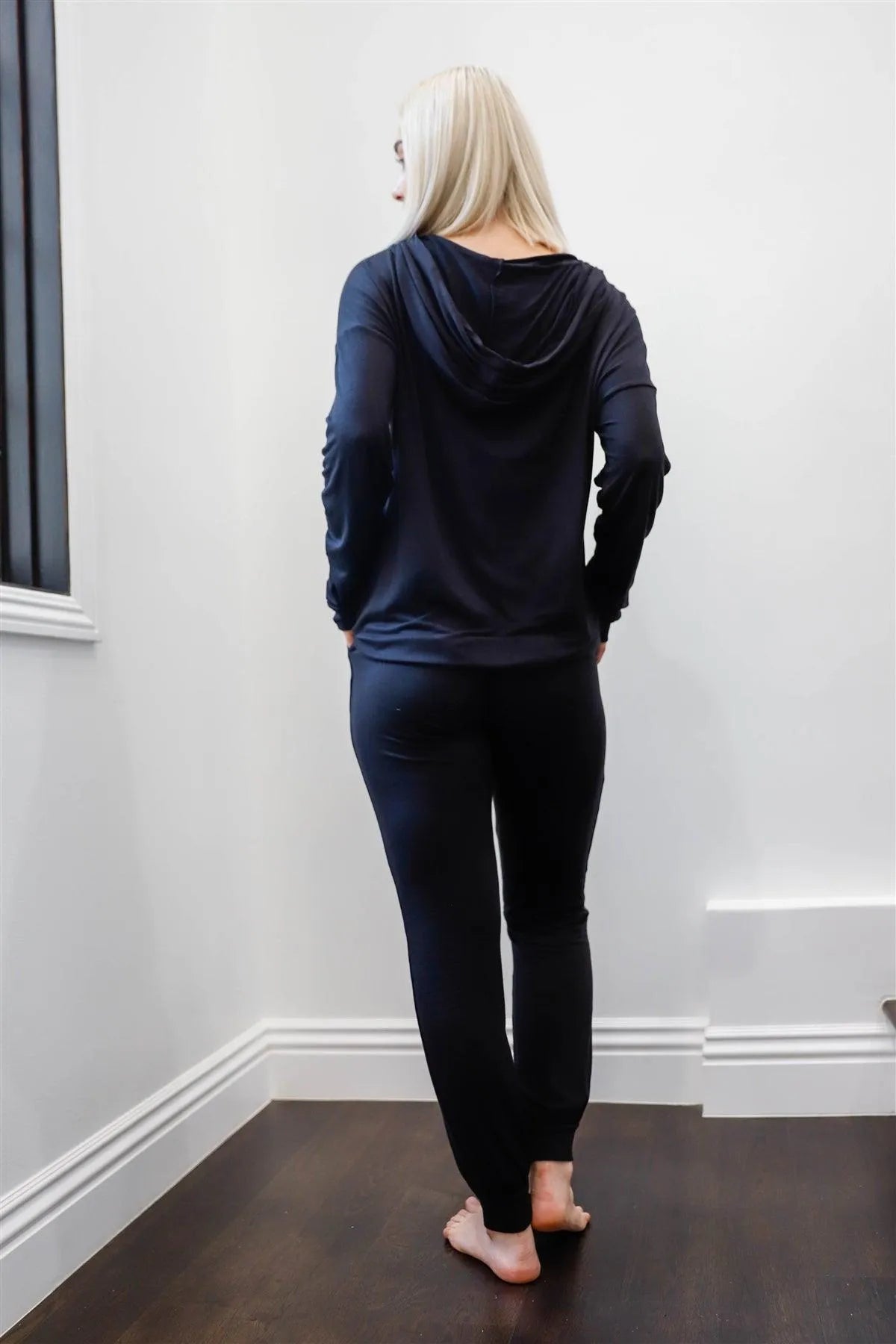 Black & Taupe Moon Sun Astronomy Print Hooded Long Sleeve Top & Pants Set /1-1-1