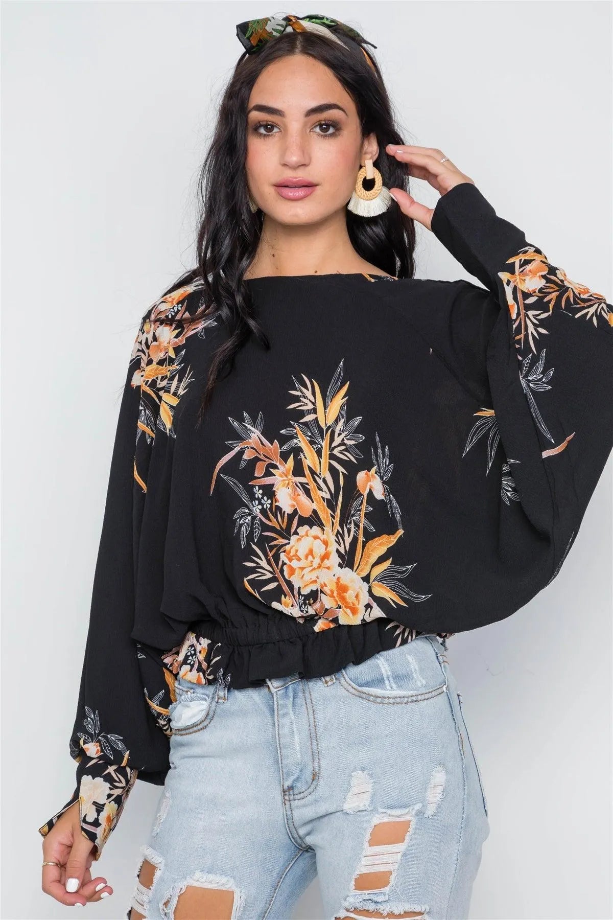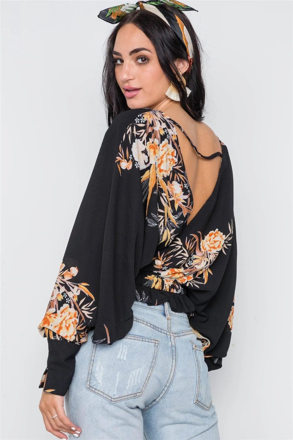 Top features: round neck, batwing sleeves, surplice back with support strap, elasticized waist, unlinbedModel is 5'9" and wearing small (Waist: 25", Bust: 32A", Hips: 35")Small Size Item Measurements: Length: 22"True to size