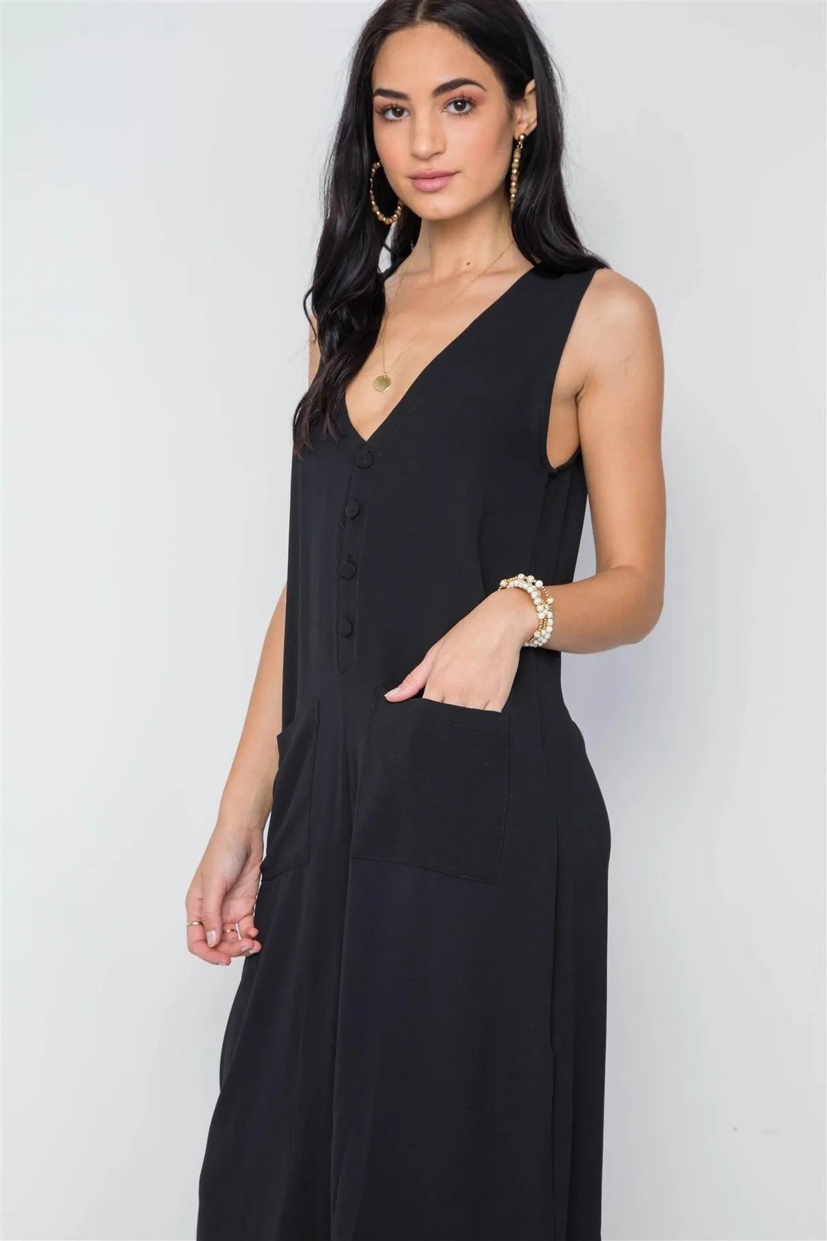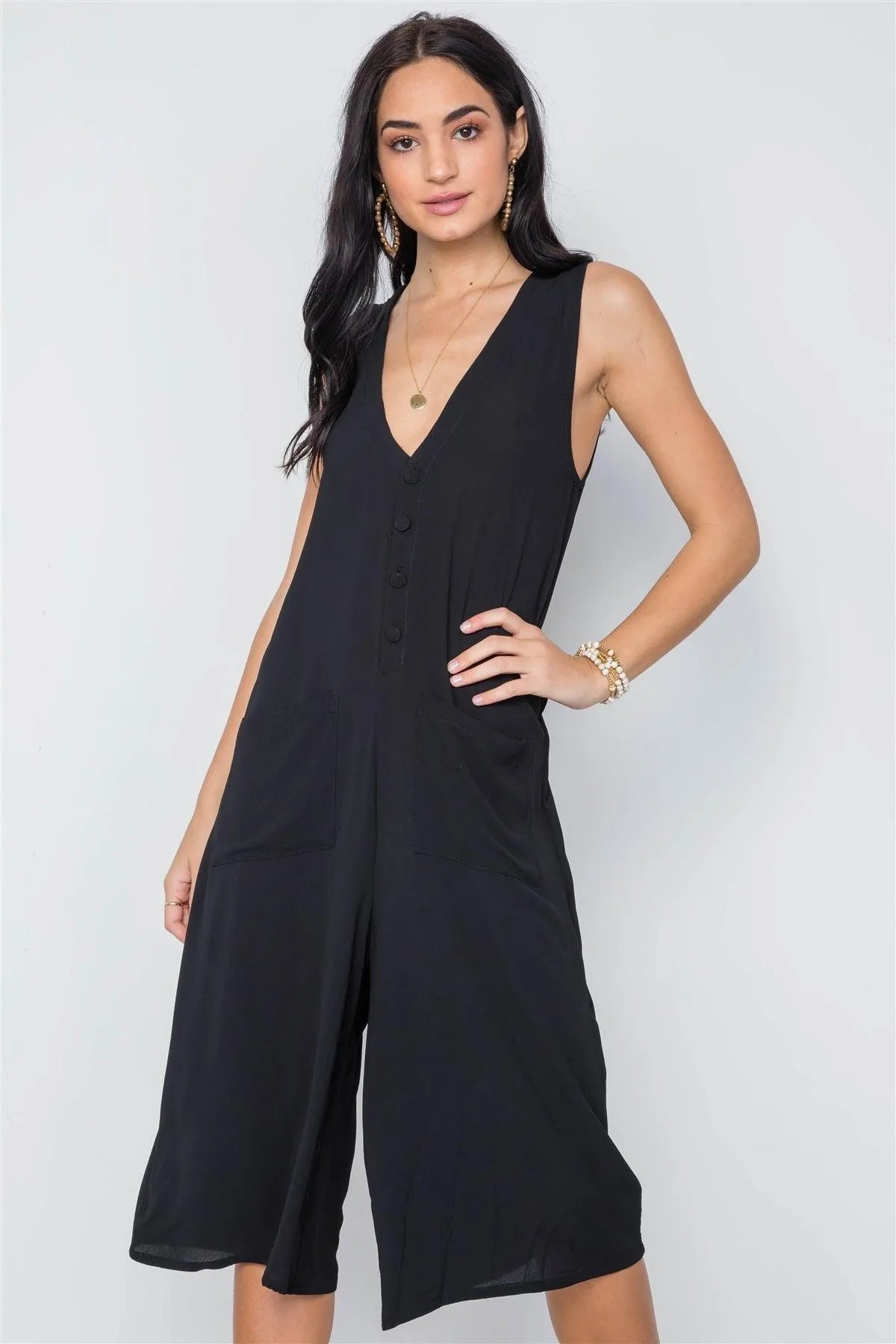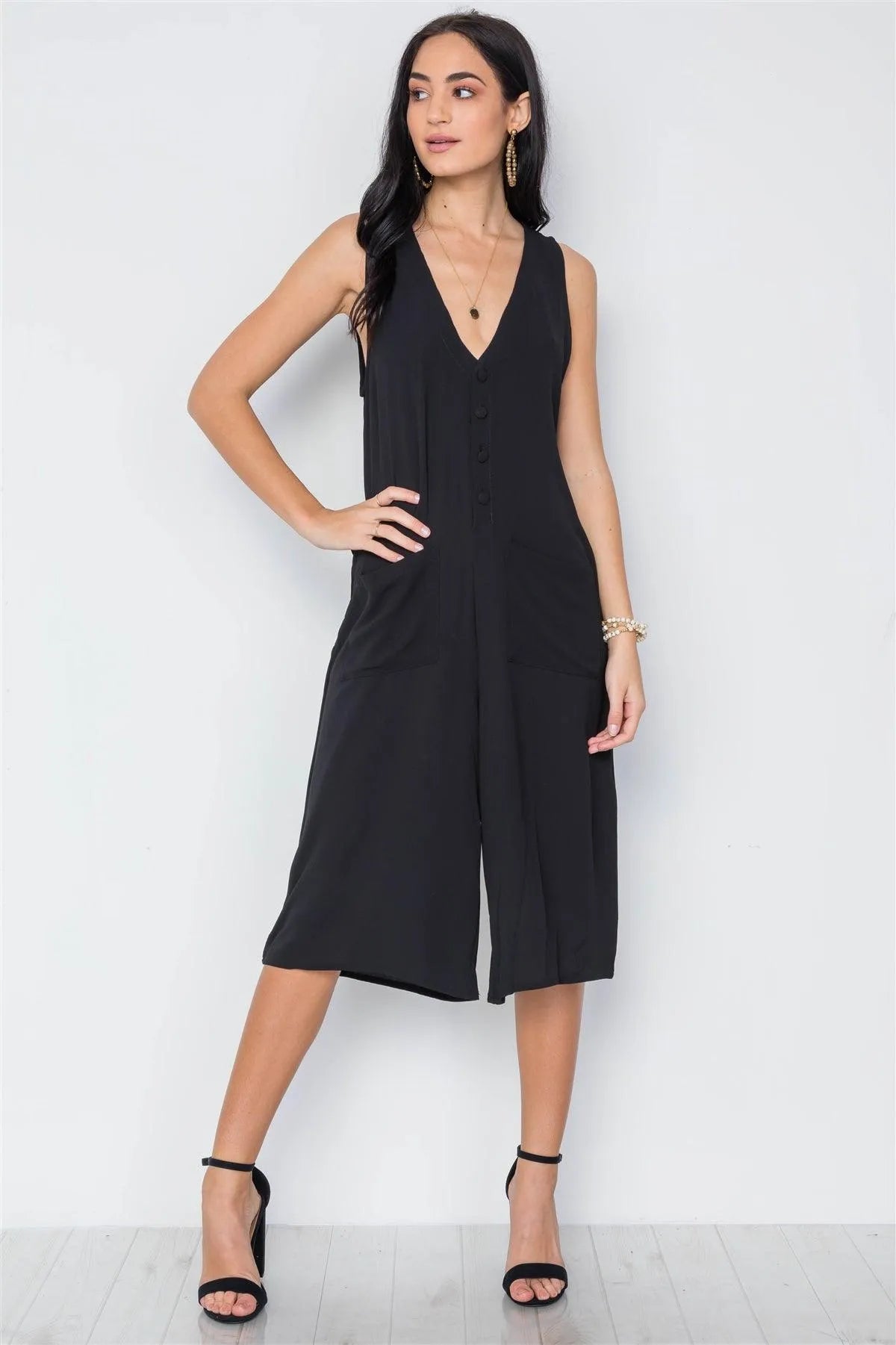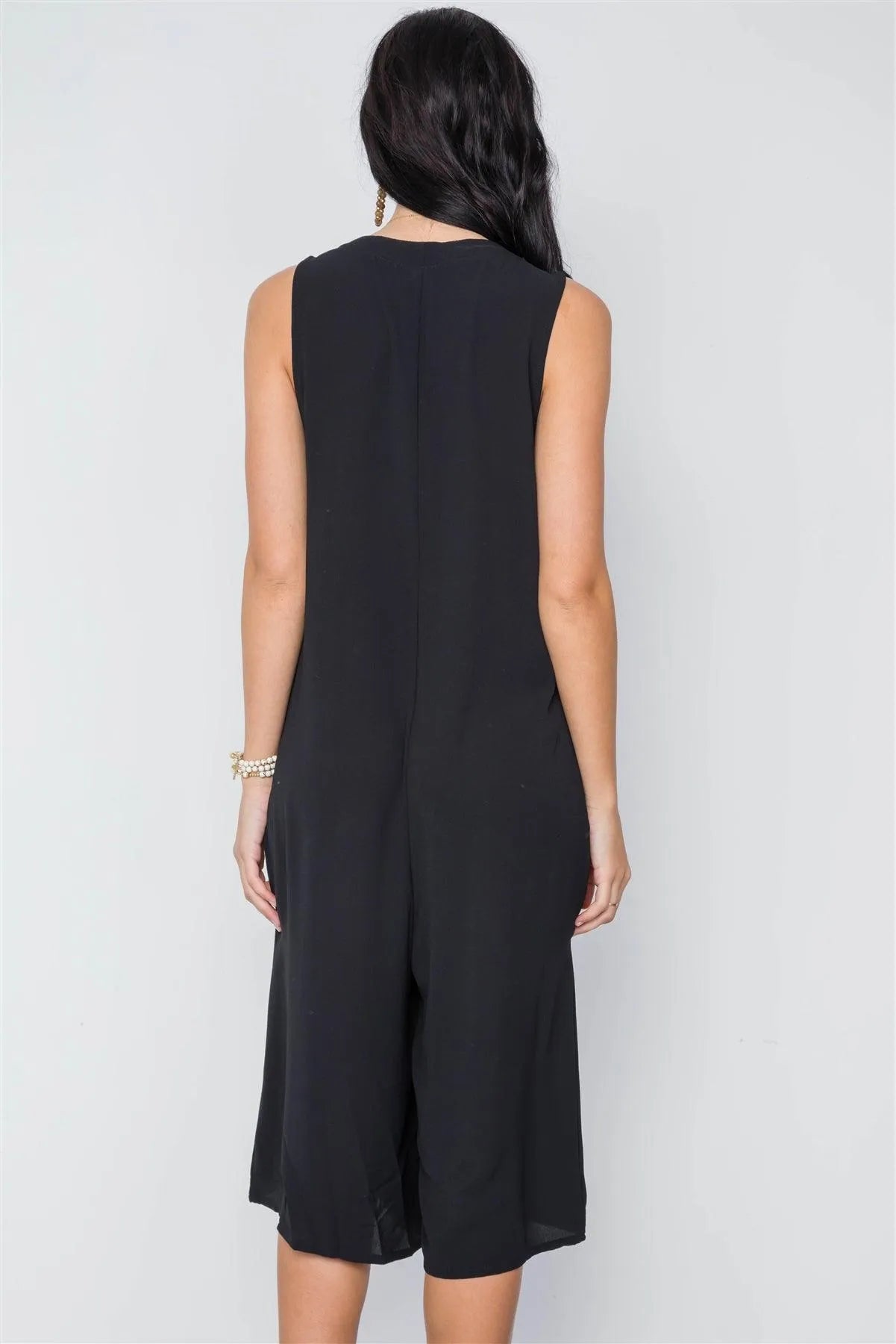 Black V-Neck Sleeveless Capri Jumpsuit /2-2-2