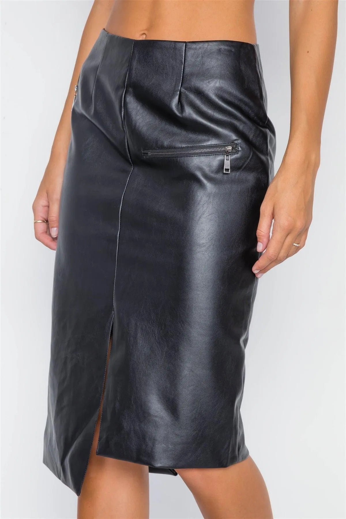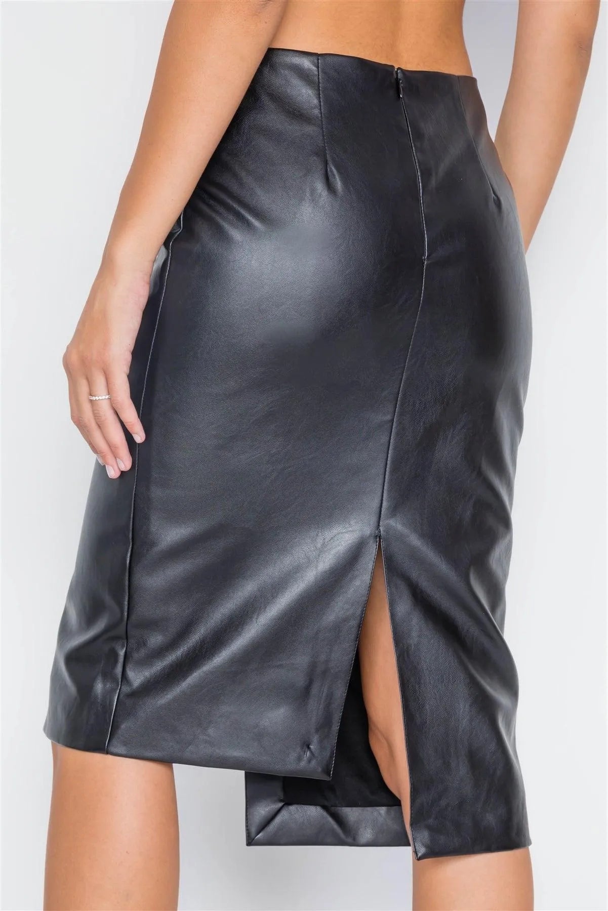 Black Vegan Leather High-Waist Asymmetrical Hem Skirt / 2-2-2